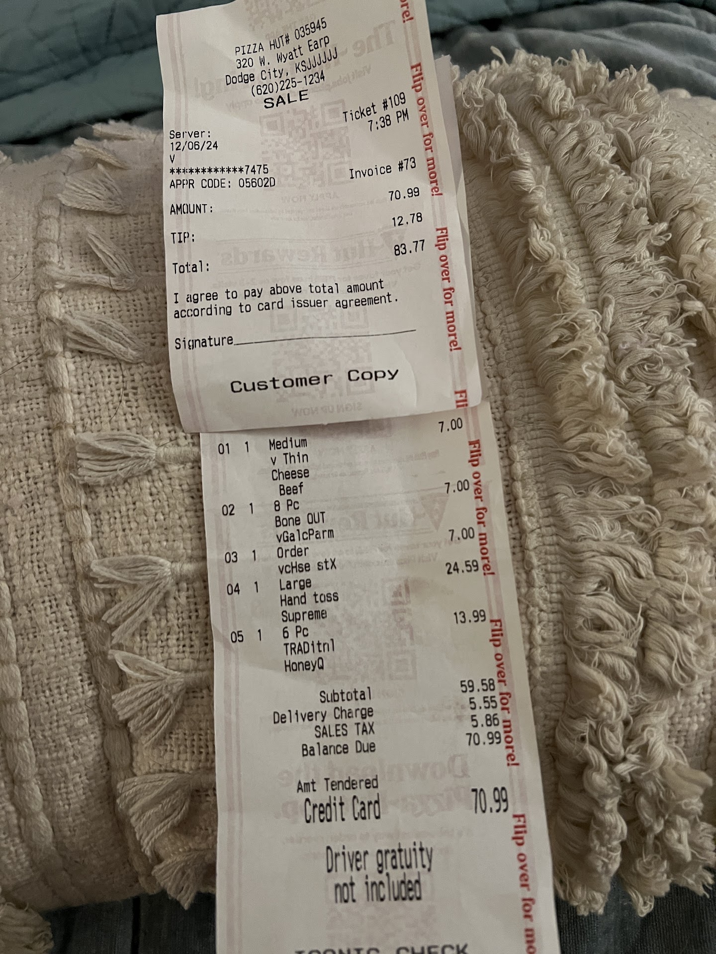 Called in our pizza at 7:30pm, was told 20-25 minutes. Picked our pizza at 8:15 And was running late to make it to the drive in theater. Opened the pizzas, and the taco pizza was only a beef pizza. Called the store told them that they made a beef pizza not the taco pizza. I was told by the manager Stacy they would have the correct one out to us at the drive in 25 minutes. My husband went to the box office and waited for the delivery for 40 minutes, they never showed up. Called the store again an hour later since the guy never came. Stacy said we are busy delivering other pizzas. I told her, you told me at 8:30 you would have one out in 25 minutes. She snapped off, I will just give you a credit. I told her we still have to eat, are you going to make the pizza? She said she had a driver who would be back in 15 minutes. I tried to explain to her that it had been an hour since I called her the first time, she then said I will just give you a credit. I told her no we still have to eat. Another 30 minutes passed, and was now 10pm and the movie was over. We left and went to the pizza Hut with the wrong pizza, my husband went in and returned the hamburger pizza. This was 2.5 hours after the order was placed. My husband asked where our taco pizza was, she said it was in route. He told her the movie is over and passed the 1st and 2nd time we were told it would be delivered. She then told him to get the F* out of the store, she said this several times to him. Another girl came to the front and told my husband quietly that she would give him a credit for the pizza since they messed up. This is all while Stacy was yelling that he better leave the store, or she was going to call the cops. The only one yelling and going crazy was Stacy. The Store Manager and District Manager will be contacted. There is video of this ballistic action of...