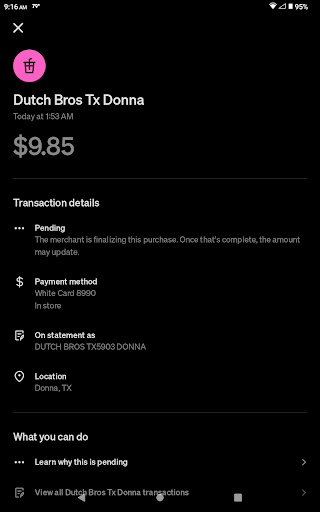 Ā Ā Ā Read moreCame to visit some family here in Texas from Alabama and of course Dutch bros does not exist yet in Alabama donāt ask me why !! at least not closed where I live ,so first time here wonderful staff ,but Ms Natalie Herrera the one that took my order was so nice with a big smile and so so patience with me cause I had no idea what I wanted I love coffee but was so confused of what to get here so definitely ,Natalie help me and my lil family get exactly what we wanted best coffee Iāve ever tried Thankyou Dutch bros !! And Thankyou Natalie for being so kind and sweet and absolutely patience, we need more people like you in this environment definitely coming back on my next visit too Texas .We need one in Alabama!!!...