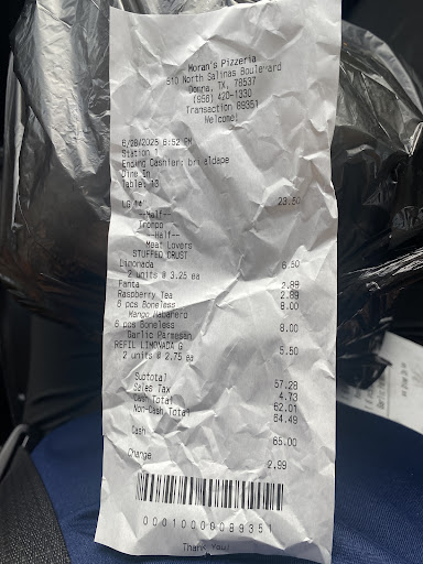 So, like many of you, I saw the pictures online of the hot cheetos and Buffalo wing pizza and had to try it. I went hoping to find a new place to enjoy some great pizza. So, bare with me till the end. The hot cheetos pizza is just simply crushed hot cheetos on pizza bread with a swirl of nacho cheese on top. That is it. I thought it was a pizza, like with pizza sauce and cheese with the hot cheetos on top. I was very wrong. It is literally just crushed hot cheetos on top of bread. So I personally would never order that again. The same is true with the Buffalo chicken pizza. It's bread with Buffalo sauce and ranch dressing (it's not the good ranch) with boneless wings. That's it. It is not a pizza. I was really expecting again, a pizza with these toppings. At first glance, you think, wow, this looks really good. I went thinking I was getting a pizza. My mistake. My x-large half hot cheetos & boneless Buffalo wing pizza was $22 plus another $4 because I wanted a half and half pizza. Our appetizer was fries with cheese and bacon called "Moran Fries," and they were terrible. They were $7.50, small portion, and the fries tasted like they had been reheated. My wife had the shrimp scampi for $10.99, and she loved that. Good portion and great taste. If we ever decide to go back, I will try a regular pizza. The service was good and the place was nice. Also, take cash because they charge 3.99% if you...