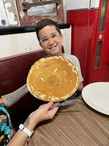 I can't say enough good things about my breakfast this morning at The Early Bird Diner. This hidden treasure is sure to be my go-to spot for breakfast every time I'm in the Mon Valley with a hankering for a veggie omelet. The staff was friendly, and the whole look of the place had a throwback vibe that filled me with nostalgia for days gone by. As I already alluded to, the veggie omelet was "fire" (as the kids would say). Speaking of kids, my girlfriend's son was blown away by the size of the pancake! It was much bigger than his head, which is proven by the picture I've provided. My girlfriend and our friend Mike are both meatheads, and they enjoyed the variety of breakfast proteins...they both commented several times on the high quality of the bacon and sausage. My compliments to the chef, as well as the entire staff who made this breakfast experience one I'll always remember. I can't...
