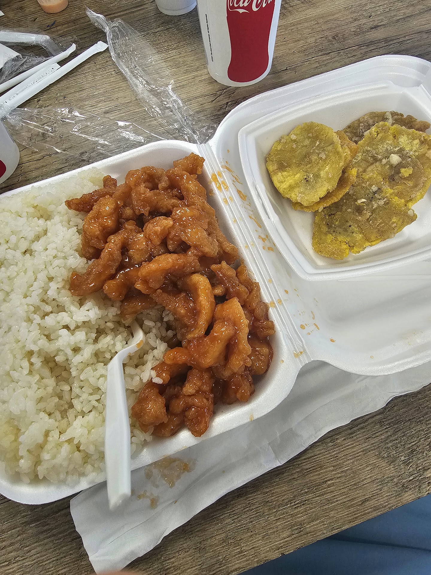 Read moreIt's a fast food joint so don't expect some type of full service restaurant with beautiful decor. If you're looking for really good fast food with a bunch of choices with good prices and big portions this is it. We had the orange chicken it was good, had almost a Latin twist on the flavors, big portions with fried rice, it was hit. Also had the shrimp with onions and peppers it was also really good, shrimp were big done right, not over cooked and of course cleaned and deveined. Can't stand when some places do not clean the shrimp. They have everything from fried chicken to Chinese food and Latin food. I would recommend this...