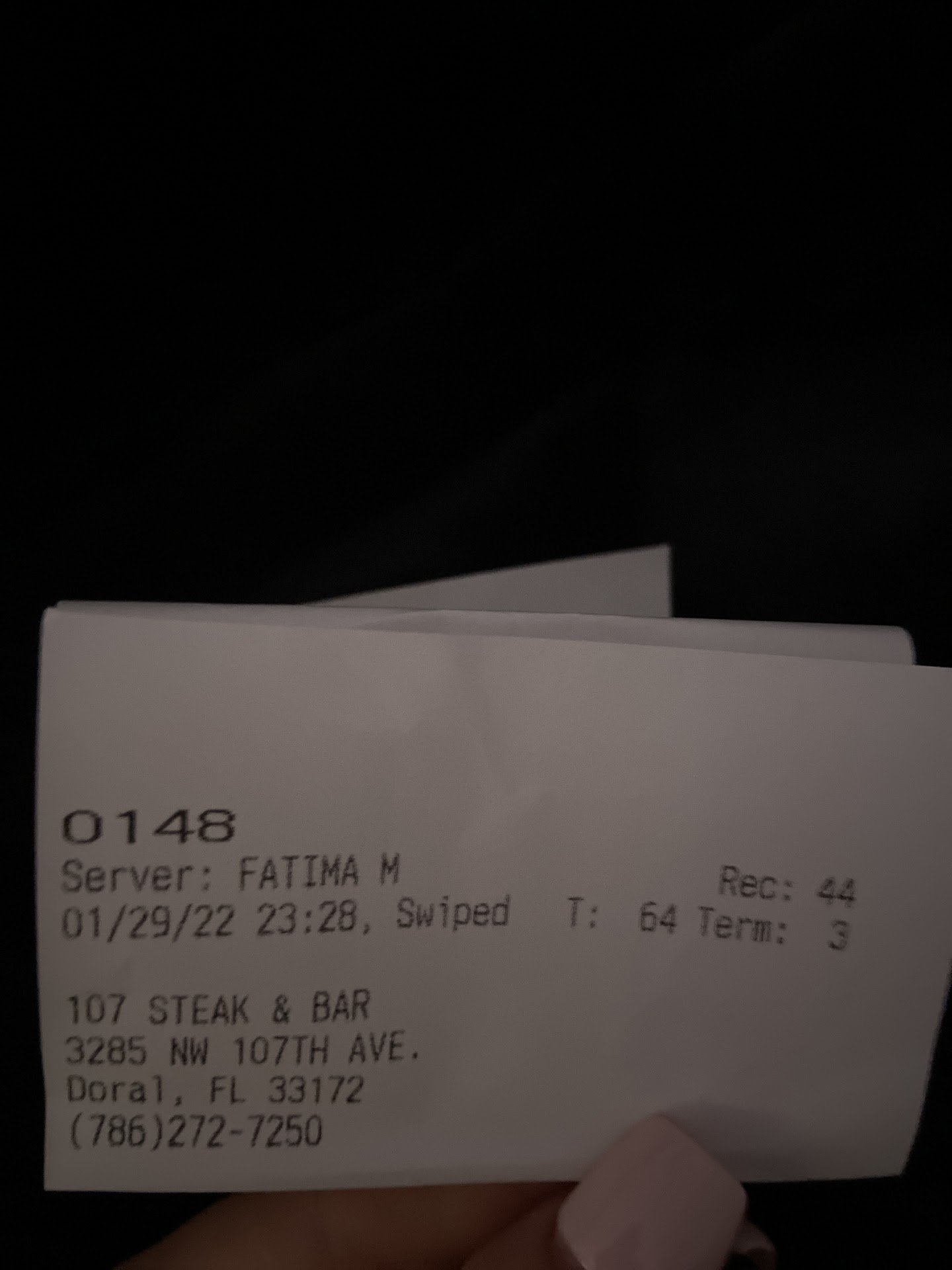 I made a reservation for my dadâs bday on Saturday night. When we got there we were waiting like 15min or even more at the hostess station and nobody went to take care of us. I had to talk to the bartender but he was so rude and said â Iâm not the hostess Iâm the bartender so just go and ask someone elseâ there was NO hostess, NO manager, no nothing!! When I talked to a server she said âyea Iâll get u a tableâ but she just forgot abt us and kept doing what she was doing. Until I got really mad, the server finally came to give us a table. But our server FATTIMA M came to the table with a really bad attitude, she had like an annoying faceđ and we never said anything to her, cuz we were looking to have a good time for my dadâs bday, we tried to be nice w her but she just had a bad attitude w us. We ordered the Tomahawk but we asked then to cut it on the table, not at the kitchen!! And she just ignored what we said cuz she brought it sliced from the kitchen. She made us feel uncomfortable since the first moment and as I said before, we were just looking to have a great experience on my dadâs bday. But now understand why she doesnât care if she gives us a good or bad service. Cuz it doesnât matter what service they give u, theyâll always include the tip on the checks. I would never go back to this restaurant, I had the WORST experience, really bad service and the food...