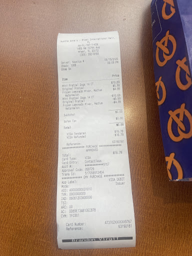 Read moreWhen I finished paying my mini pretzel dogs fell down some on the floor some on the counter, I asked Yesica M to please exchanged the pretzel dogs for another one since those were contaminated she said NO….. what kind of human being does that!! I can’t give dirty food to my special needs kids!!! She didn’t help me with respect Yesica was rude since I stepped in the kiosk…. I decided to return everything Bad customer service!! Yessica doesn’t know how to treat people!!! Bad customer...