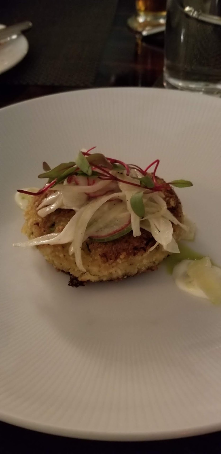 Reluctant to try more sides, we were offered complimentary dessert instead. My boyfriend had the apple crisp and ice cream and I ordered the lemon cheesecake with huckleberry sorbet. The apple crisp was tasty, but the amount of crisp in comparison to ice cream was disproportionate, leaving lots of crisp left without ice cream. The lemon cheesecake was exquisite and had a lovely brûlée on the top which gave it a delightful crunch in contrast to the creaminess. The glop that was supposed to be sorbet was one of the worst textural and flavor experiences I have ever encountered. The consistency was that of grainy, masticated, juiceless berries that had been frozen together without sugar for some unknown reason. I took one bite and shoved the rest of it to the side to be avoided at all costs. While we enjoyed our time at BLT, we were very disappointed that a restaurant of this caliber would make such huge food mistakes, especially...