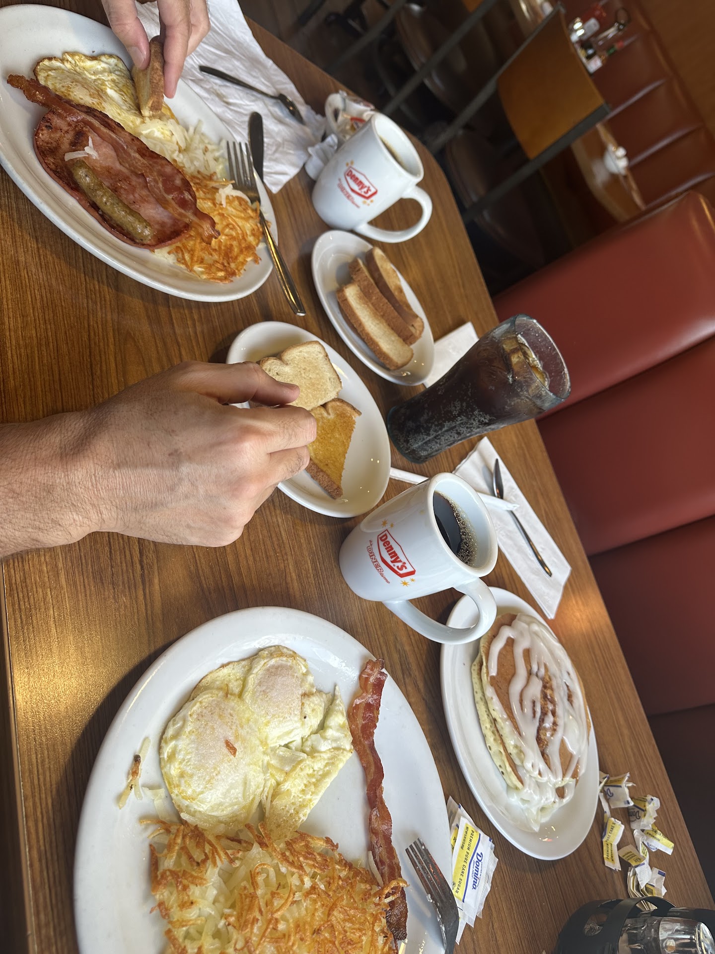 Read moreI ordered a double cheeseburger in the afternoon the 2 previous days. The burgers were fresh and correct portion for double cheeseburger. Then I came later in the day today, 06/16/22. The double cheeseburger was short 2 burger pucks, it was like ordering a double from 2-4-6-8 menu but full price. I use to work for Denny’s. Hamburger and hash browns is fairly safe to order. I’m not going to order anything I consider high risk. Craving CFS the other day but was afraid to order it because the gravy is definitely a risk from a low volume location.
