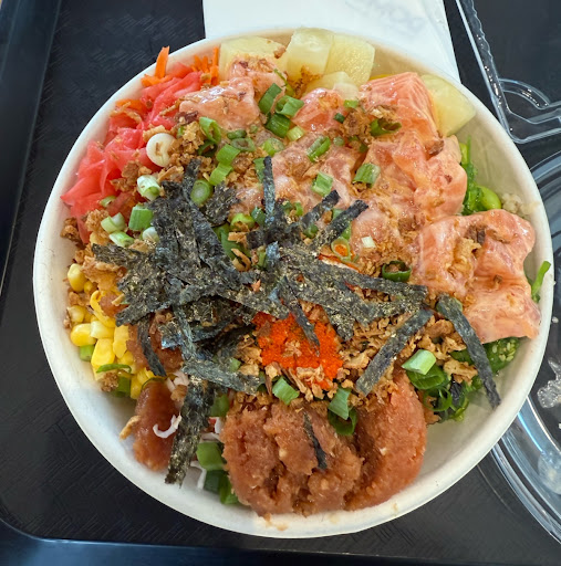 We were doing some shopping nearby and looking for a quick but tasty Asian dinner spot. Luckily, we found ourselves here and it hit all the right feels! Not being able to decide between the popular meal options, we decided to all try something different. We ordered the Poke Bowl with the spicy tuna and salmon, the Hawaiian BBW Short ribs and chicken mix, and the Tonkatsu Pork Belly Ramen. We ordered the Takoyaki as a starter as well. Everything was pretty great and service was EXCELLENT! The food was hot and fresh and promptly delivered. Flavors are good and portions are great. After our meal we tried their bubble tea. The tapioca was the right chewy texture and the flavors were refreshing. It was a very satisfying visit and although the place is small, it was neat and clean. They have several kiosks to order from as well, making it even easier. Prices are good too. Highly recommended! We will...