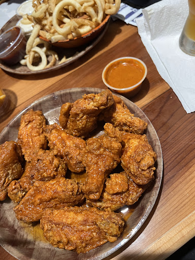 Read moreStood at the door for about 5 minutes and no one acknowledged us. They were a bit busy but workers kept passing by and nothing. I went over to a waitress at the bar and asked if we sit ourselves and she told us yes to find a table. The two tables we found one was right by the restrooms (nasty) and the other was dirty and crowded. We sat at a booth when another family got up and cleaned it ourselves. Again, another 5 minutes or so no one came. Finally a waitress came over and apologized that no one had come to us and explained that they were on a shift changed and someone would be right with us and took our drink order. We were going to try different things. First order of naked wings came extremely fast and were cold as if someone hadn't wanted them and the buffalo shrimp were also not hot. The sliders were okay. The second order of breaded wings were hot and fresh and tasty. The curly fries were yummy with the cheese. When we got the bill it was ridiculous $91 on that experience and 3 beers. All the little sauces [blue cheese & cheese] were additional and we didn't know. Would like to try another location...