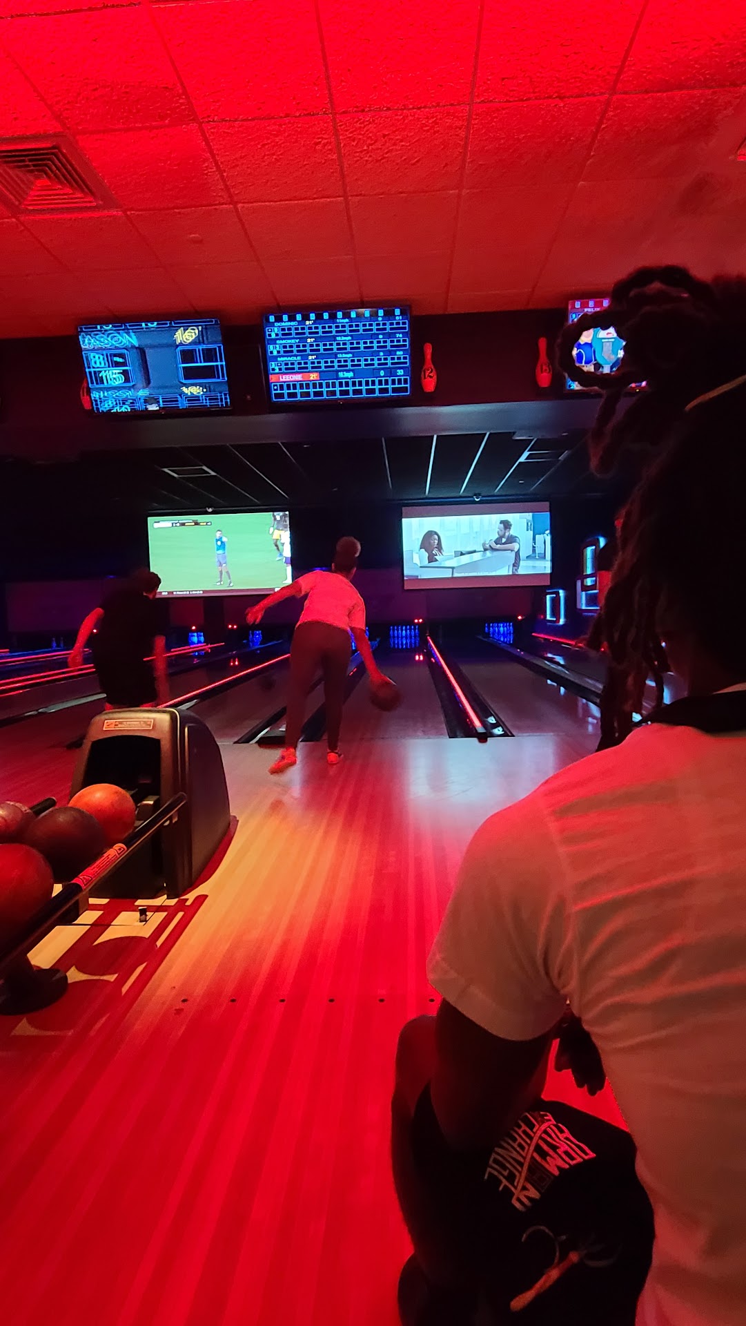 You know how people say "If I can give it less than one star, I would".. well, this is quite the opposite. If I can give it more than 5, I would. Let me tell you about my experience there. First of all, I found this place on google right by where I work. I wanted a new place I could take my boyfriend to so we could celebrate his birthday. I made a reservation through OpenTable but looking through their official website, I decided to call in and upgrade the reservation to the dine and play (dont remember if thats what its called but essentially, after you're done eating they put you at the top of the bowling wait list). Melanie answered the phone and right away shes incredibly cheery and polite and quickly changes our reservation. Already leaving me with a pretty good feeling about this place. So my bf and I overestimate how long it would take us to get there and we end up getting there 20 minutes before our reservation. At the front desk, it was Melanie who greets us and remembers me from the phone call. She was adorable. Lets us know that if we need anything, to let her know and right away sits us down at this corner booth that overlooks the whole place. Which was nice, as we are first timers. Our waiter comes; Sebastian, and he is all smiles and again you could tell that the staff has been trained very well. They give you the feeling that even on a bad day for them, they will still smile and act polite. We order a round of drinks and some apps and our main meal. I kid you not, our food was at our table less than 10 minutes after that. Everything perfectly cooked and delicious. The wantons were so yummy as was their 4 cheese pasta (might be 3 cheese lol I dont recall) My bf got the tuna bites. I dont like fish at all but he wanted me to try them and they were really yummy. Color me impressed xD He also got the jambalaya which was great. Another round of drinks and dessert and we were done. Everything was so different, taste wise. Everything was fresh and perfectly made. The whole time, Sebastian and Melanie have come around and asked us if things were good for us, which they were. We were blown away by this place. When they bill came, I went to pay. Sebastian came back and in the most polite way told us to call the bank because it had been declined. It was no problem, as I suspected it would happen because my bank seems to think every new place I go to is a scam. Sometimes it works in my favor but nothing a 2 minute call wont fix to let them know this place was safe. Sebastian wrung it up again and that was that. 25% of our bill was like $20. I tipped $30. My bf and I like trying out new places all the time. We travel Europe and the US and I kid you not, we have never received better customer service. Did I mention I have a culinary degree and have done internships at high end restaurants and even then, I have never met a friendlier staff. The atmosphere itself is fantastic. Dim lights and chill but fun music. Things are cozy but classy. They were running a special for bowling. We jumped on that deal. The lanes were clean, the bowling balls were readily available. We had this large family on the other side of us which we ended up cracking jokes with after I accidentally let a ball roll backwards towards my bf. (No one got hurt, it was too gentle and slow and my bf stopped it before it reached anyone else). I know that other people arent part of the restaurant, hahah but they were in such a good mood that I'm going to add bonus points to this place too x)