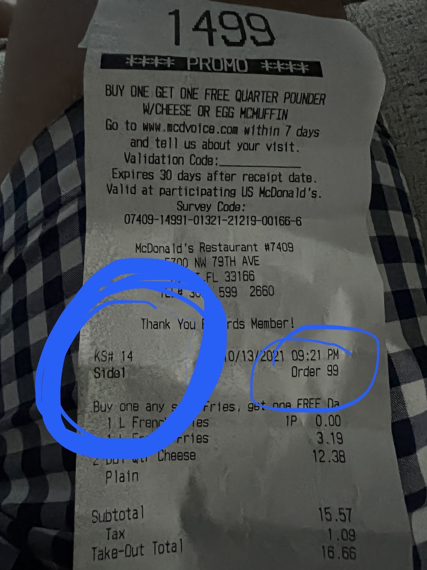 Read moreI placed an order at this McDonald's Drive Thru. After I paid and pulled up to the 2nd window, I was handed my food by a manager in an orange shirt, she proceeded to walk away and close the window as my soda just sat there and she completely ignored me as I said "Excuse me, my soda". She walked away and I honked the horn briefly to catch her attention, which she also ignored. I honked again and a person from the back motioned me to wait. My food had been handed to me and my soda was just sitting there by the window, I had nothing else to wait for. I had to physically get out of my car and open their drive thru window and let them know I needed my soda, the manager got my soda, handed it to me with a disgusted look on her face and didn't even apologize for forgetting to give me my soda in the first place. This treatment of customers and service is unacceptable. My advice is to hire folks with better customer relations who put effort...