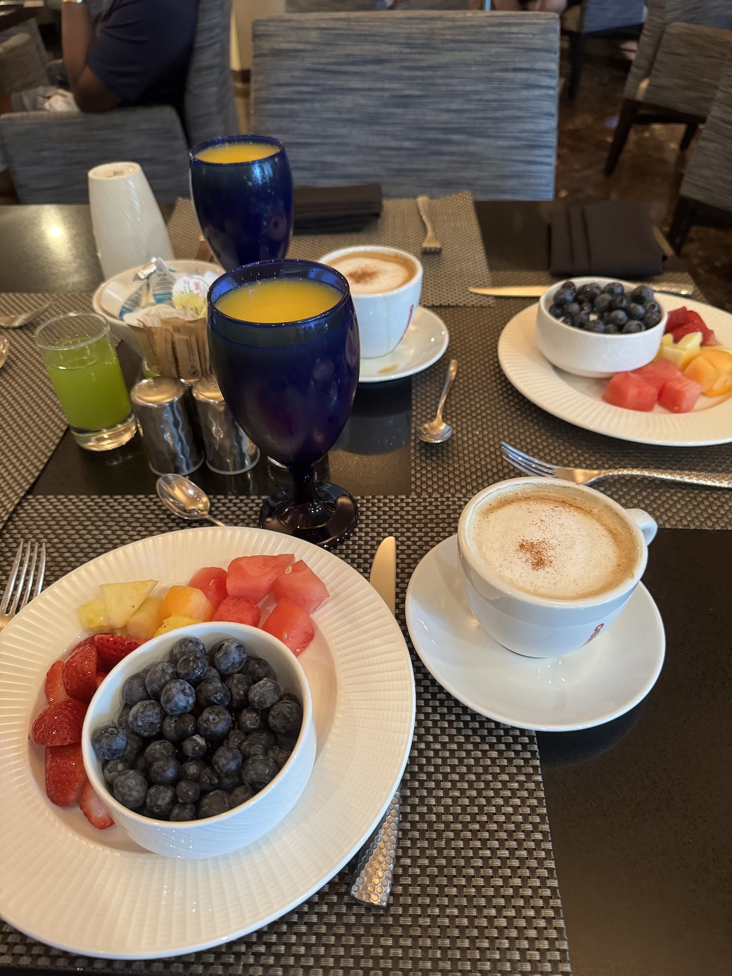 The Blue Matisse is probably the restaurant area and the Nau lounge is the bar? but they are in the same room with the same folks working both areas and the seating seems to be connected. I split the difference in rating scores here. We had dinner and while the food was great, the service was lacking. It was slow and not too inspired. Our wait person wasn't very attentive, and we had to flag her down several times to get things we needed. So, I would rate that as a 3. Breakfast the next morning was a solid 5 if you don't look at the cost. As a Diamond Elite member, we had an opportunity to get a coupon for breakfast, but we took points instead. Wrong move, because we were charged $60 for the morning buffet. Granted it was delicious and they had many items to choose from, but we could have gotten away cheaper someplace else. Probably not the selection of dishes we had here, but we don't eat that much and there are many restaurants with a mile or so from the hotel we could have gone to if we knew it would...