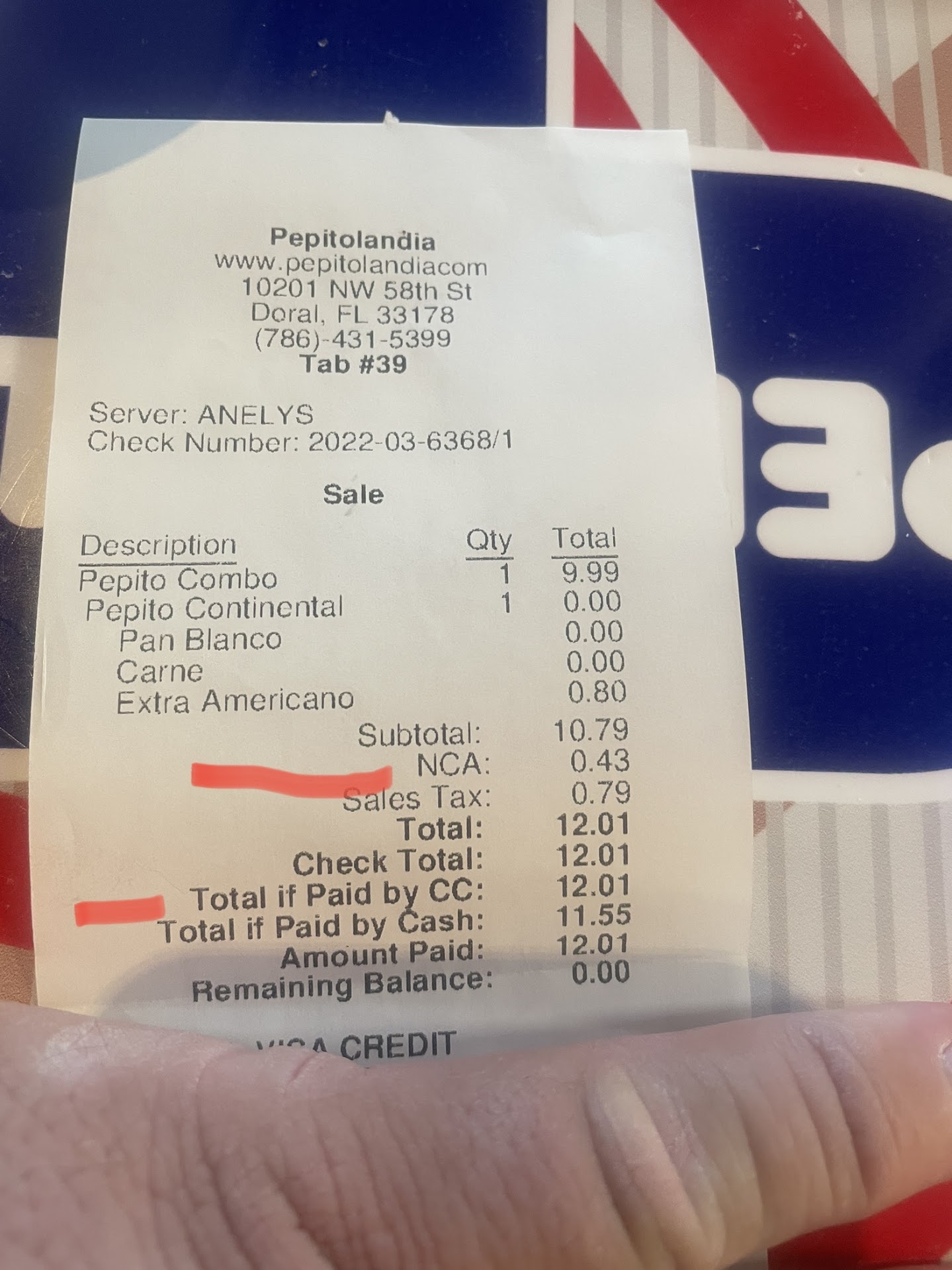 Read moreFirst time I dined in, I ordered a small pepito, and it came with fries, then the second time I ordered to go, and I asked the cashier if my food comes with fries and she said yes, so I didn’t order any extra fries, then when I get my food I see there’s no fries, so I ask her and then she says it doesn’t come with fries…?? I pay the same price as if I were dining in but I get less food, it makes no sense. SO, the third time I go there, I get my food to dine in because I want fries and they say it doesn’t come with fries!!!!!!!???? Every time I go I always order the same pepito but there’s always something wrong and I just don’t get it. Food is good but...