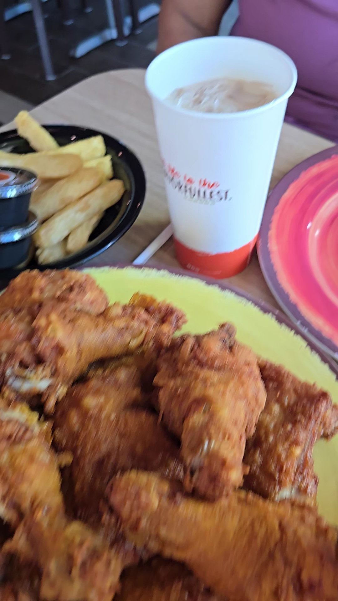To start, I want to say that the chicken is very tasty, although Iām not sure if it was because the air conditioning was too cold, but the chicken was rather lukewarm. The coleslaw was exceptional. However, unfortunately, the service has two issues. First, customers canāt grab napkins as they please; instead, they have to keep getting up to the counter to ask for them. Also, there are no stations where customers can dispose of their trash after finishing their meal. Even though someone comes to collect it, there should be trash bins available. Other than that, the staff is...