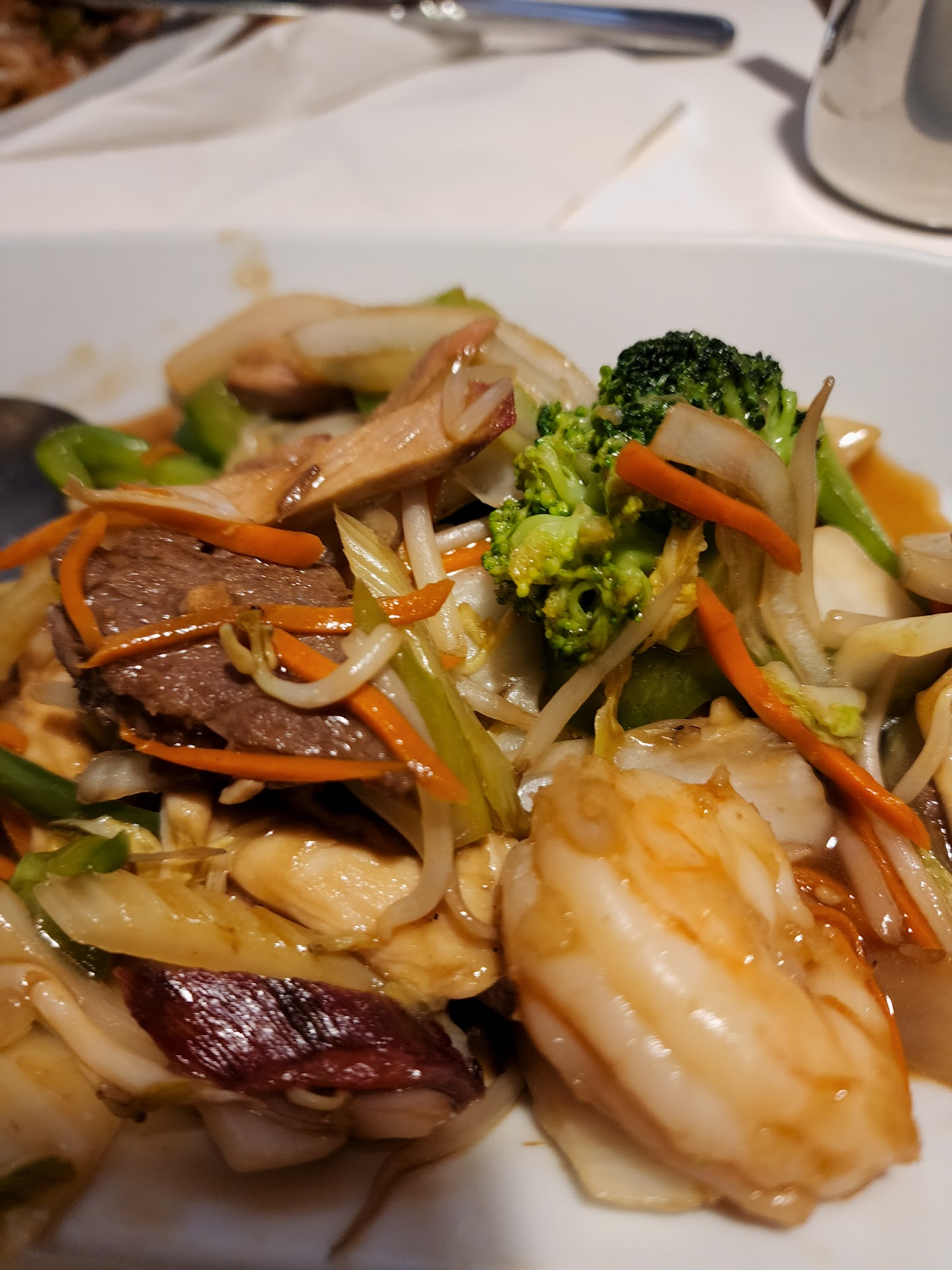 Read moreI realize I'm in the minority here, but I really felt the food here was very poor quality. This is at best a basic take out restaurant. The Egg Drop soup felt like it came from an envelope with a little bit of egg thrown in for good measure. It wasn't the worst I've had, but it wasn't good either. The Hot and Sour soup was just a mess, way too many ingredients in there. The fried dumplings were overfried and dry. I've had frozen dumplings from Trader Joes that have tasted way better than this. The Yeung Chow Fried Rice with Shrimp, Pork and Peas was the worst dish of the evening. Fried white rice, with little pieces of dried pork and baby shrimp that you would have found in a 1970s version of a shrimp salad. Imagine a big, beautiful prawn that has been sauteed in sesame oil and garlic, infused with a citrus blend and a heavenly aroma, with a slighly firm texture and tantalizing crunchy tail. Now think of the EXACT opposite. No flavor to this dish whatsoever, it honestly tasted like it was something from yesterday's buffet line. Dried out like it was sitting under a heat lamp for hours and then doctored up with the baby shrimp. This is the kind of restaurant that you can probably order a decent Sweet and Sour type dish, or Honey Garlic something or other so as to disguise the poor quality of the food. To be fair, this is the case with most Chinese Take Out restaurants, which for the most part are of very poor quality. So, in essence, this is your standard take out Chinese Restaurant. Low quality, cheap (ish), and 'plentiful' (meaning lots of old...