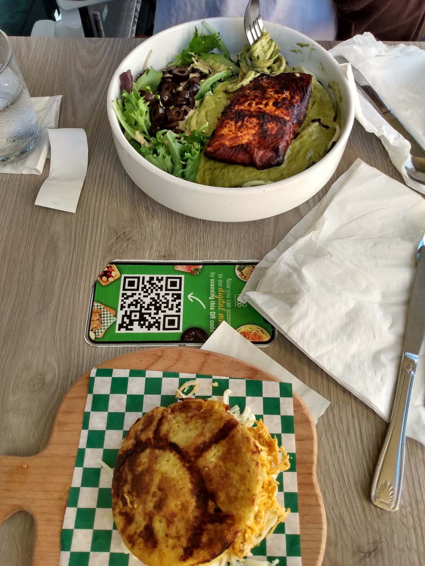 Mira, yo soy venezolana. Yo entiendo, yo comprendo, ayudo y respeto, pero el servicio fue inaudito. Segunda vez que volvía porque realmente me gusta la comida pero odio el servicio, y segunda vez que me encuentro con algo así. Las dos particularmente desinteresadas e irrespetuosas, como si darme un servicio por el cual estoy pagando fuese interrumpirlas o que les estoy pidiendo un favor en un mal momento. La cosa escaló tanto, que la clienta que le comentó que teníamos rato esperando por servirnos, salió cuando nos fuimos y nos comentó que ella trabajó ahí varios años, que trató de ayudar a las muchachas porque sabía que la dueña se molestaría y ellas también le salieron con una patada. No entiendo muy bien el descontento que tienen ellas ni la negación a un buen servicio, pero ojalá lo resuelvan pronto y logren dar un servicio decente. (2020) Their social media is beyond better than their products and service. Most of the dishes they advertise on Instagram are not available on the restaurant or are just specials. Service is probably the worst I've been to. I was waiting for a friend and asked the server to please bring me water while I wait. She told me she was already off and that I had to wait for someone else to take care of my order. Right after, I saw her sitting down in the counter. Why didn't she call someone to help me or brought me a water? I wasn't going to order. I just asked for water! It was very rude. I ended up leaving after 15 minutes waiting for someone to bring me a menu or water. I went there a second time months after. The tequeños were raw on the inside and cold, cheese didn't even melt. That sucked because they had good flavors. Green sauce, which I've tried tons of healthy options of, only tasted like garlic. The plantain arepa was too soft, I couldn't eat it with my hands as it is supposed to. I ended up eating it with fork. Don't misunderstand me, I know it is a healthy place but chicken had no flavor at all! Not even salt, I swear. The cherry on...