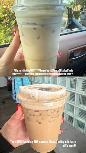 What I received was milk — with a dash of espresso. That’s right: a full cup of milk with barely any coffee flavor. Isn’t this a Cuban restaurant? Where is the Cuban espresso — the rich color, the bold flavor? The drink I was served looked nothing like the product photos. The moment I took a sip, it confirmed my suspicion: no coffee taste whatsoever. If you're familiar with Cuban coffee, you know it's supposed to be strong and flavorful. While I understand that these are specialty drinks with added flavorings, there should still be a noticeable presence of coffee. There wasn’t.