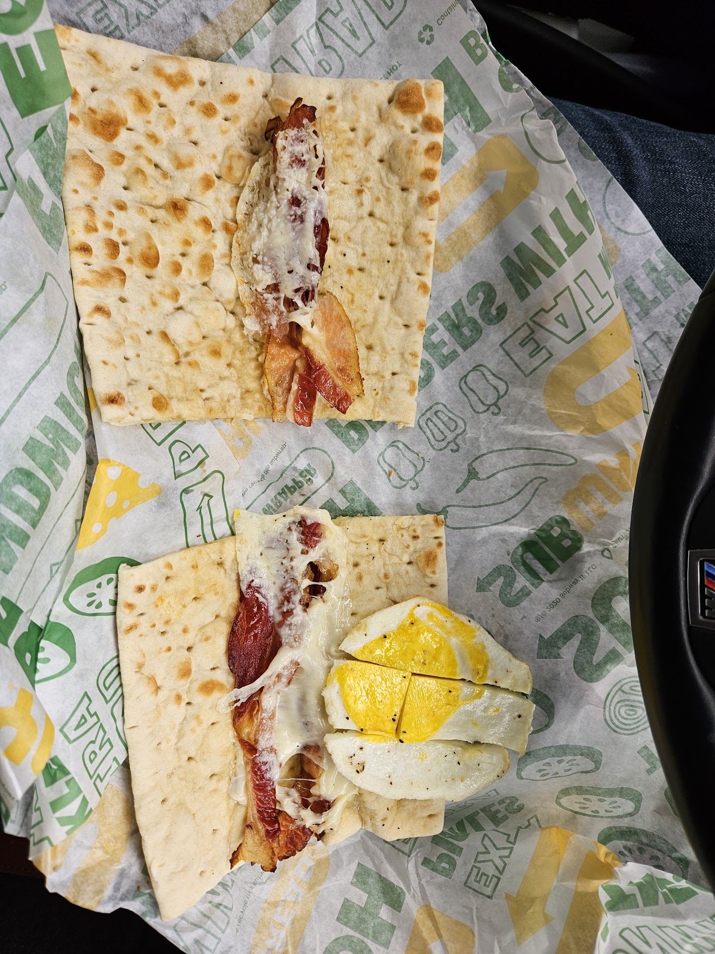 Ā Ā Ā Read moreAsked for a footlong bacon egg and cheese on a flatbread. I saw very little egg and I asked the lady how many eggs it had, she looked at me and said 4 eggs, I said ok. I get to my car open it up take the pieces of eggs out and it came to be 1. I walk back inside and the younger girl tells me it should be 2 eggs cut in half , the older lady comes back and says she did it "by mistake" , the audacity to look me in my eyes and tell me there are 4 eggs...