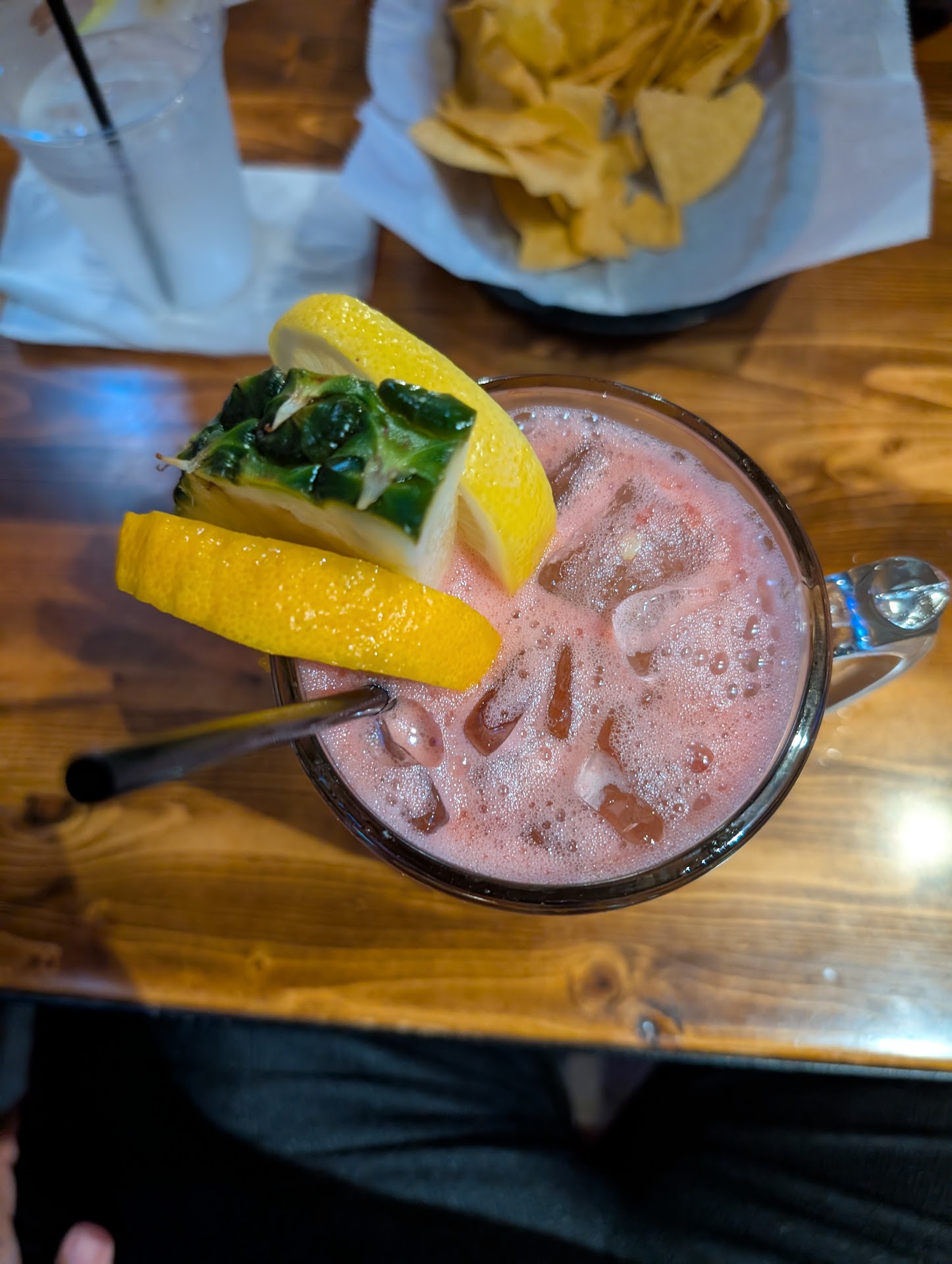 Onto the most important part, the meal. Their drinks are pretty reasonably priced and very delicious. Ultimate Watermelon and Pina Colada purchased this visit and both were banging. By far the best thing this restaurant has to offer in my opinion. For food, the complimentary chips and salsa is by far the worst I've had in the area. I know it's complimentary but cold chips with no seasoning in 2025? They can do better. Main food was Fish Tacos and Shrimp Fajitas and both were mid at best. Nothing spectacular or outstanding about the fish tacos but they weren't disgusting either. I was told the shrimp fajitas lacked seasoning and didn't taste like much. So the food was just ok. Dessert purchased was called Cheesecake Xangos and it was fine as well but won't blow you away. Warmed cheesecake wrapped and covered in cinnamon and topped with whip cream. This was the best edible part of the meal in my opinion.