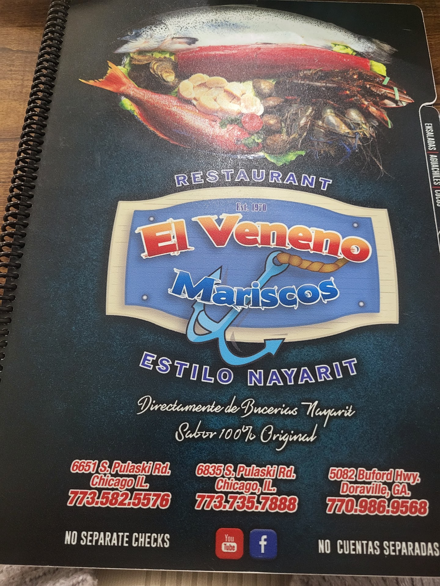 Read moreMi primera vez en este restaurante no fue muy agradable. Ayer yo y mi familia fuimos a celebra el cumpleaños de mi madre aqui entre las 6 y 8ish. Primero que nada el parking es horrible!! Si tienes suerte ahi parking enfrente pero como alado esta el taco veloz los parking se llena no tiene espacio y luego nos toco atrás del restaurante estacionar horrible lleno por q ahi vans del restaurante tambien de tras que no dejan entrar ni salir , nos estacionamos por fin. Entramos al veneno y Cuando nos sentamos 2 a 3 personas nos preguntaron por nuestras bebidas nos sabiamos quien era nuestro mesero/a. El mesero se tardo en atendernos nunca se presentó como nuestro mesero. Luego nos tomó la orden y luego q no separan checks?? Bueno esta bien tomo nuestra orden, y no ahi kids menu.... Durante el tiempo q estuvimos esperando la comida nuestro mesero andava ayudando limpiando sus mesas y se miraba demasiado molesto, que cuando fue por los high chairs 2 en cada mano, no podia y lo avento al suelo q todos en el restaurante voltiamos! Fue al proposito! Ni una sonrisa le miraba al señor toda la noche. Andava con mucha atitude cuando se alejaba del las mesas pero cuando le pedíamos algo cambiaba de atitude! Por lo menos no fue grocero directamente. Llego nuestra comida y aqui si no me quejo la comida estuvo presentable y muy rica! Y buenas porciones.Pedimos mojaras,camarones a la diabla, cóctel de camron sin galletas saladas??, papas para los ninos y arroz ya que no tiene variedades para ellos, Comimos y todo muy rico. Le pedimos al mesero un tenedor y de ahi ya no volvimos a ver al mesero hasta la salida, nunca vino a ver o preguntar si todo estaba bien si necesitábamos algo NADA !! Y eso q andva pasando por nuestra mesa mas de 3. Veces! El lugar no se miraba muy limpio, la pesera donde tiene los cangrejos muy sucia, casi sin agua, habia trays encima. El ambiente muy mal no funcionaba el music tunes la música ni habia ponian una cancion y antes de terminar la cambiaban! Ya Terminamos de comer estábamos esperando al mesero q vienera por los platos o a pregunatr si habíamos terminado NADA esperamos casi 10 minutos y mejor me pare y les pregunte a los meseros q estavan por la caja que estaba viendo un video en su cellular en tiempo de trabajo. Le pregunté si habia visto a mi mesero que tenia tiempo que no lo miraba y me dijo q mesa estas sentada ñe dije y le dije q queria una mojara para llevar le dije q era aparte la orden voy por mi dinero y me d Da un bill le dije q la mojarra era separado ! Y me dijo discuple como me pidio el bill pensé no le dije q era aparte dijo nomas dele 12 dólares a la persona q va pagar por Que ya lo mande!!!! Q molestia y que tipo de systema usan que no pueden separa checks!! Yo trabaje de host por 4 años y si se puede !! Bueno lo deje asi me fue a la mesa de nuevo esperando si miraba al mesero nunca se aparecio! Pagamos nuestra cuenta y nos fuimos por que ni el pastel queriamos partir ahi nada lo que queriamos era irnos rapido el ambiente era muy desgarable! Agarramos los regalos de mi mamá y nos fuimos! Ni un gracias por venir nada todos con malas caras. Saliendo ya estando en el carro que vemos a nuestro mesero !Caminando sobre la calle por de tras del restaurante vaya!! Casi queria regresar por el tip que dejamos que mal servico! No les recomiendo este lugar para celebra un cumpleaños o nada la comida si esta rica La recomiendo, pero el ambiente no me haria regresar y eso que fui un domingo y casi no habia gente!Q decepción venimos desde Snellville Georgia.Próxima iremos al jinete 10 min d mi casa.