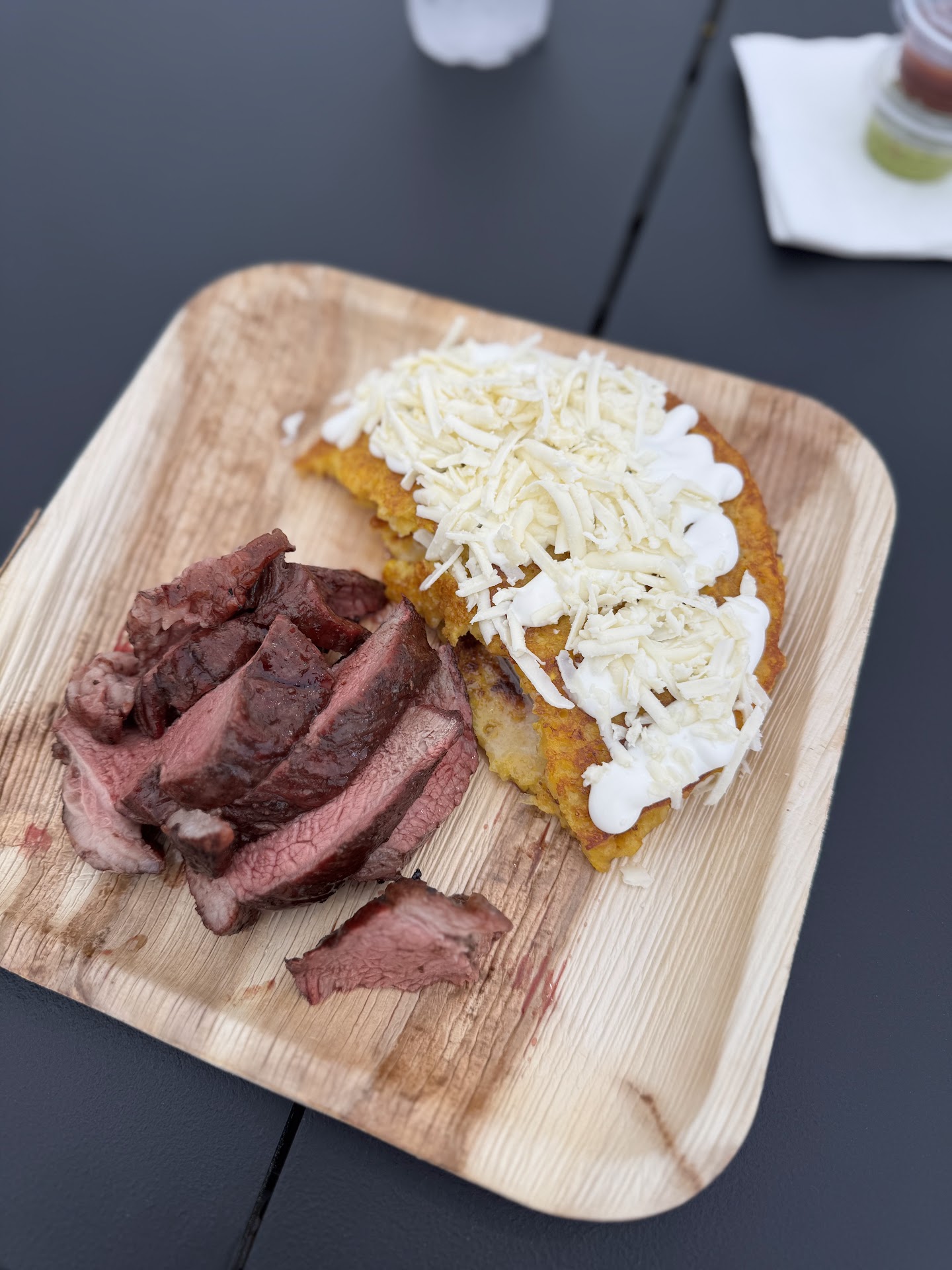 Read moreAmazing food with a Latino flare! I ordered the meat stick with coleslaw and cassava. It was amazing Flavorful, tender, and a nice size portion. I also ordered the corn cake/arepa con queso… It was a meal unto itself… The service is friendly… At the time I was the only customer I hope these guys are very successful. They have a wonderful idea. Great product. They were ready for a party with tents music tables…. Unfortunately, they’re way back from the road on The side of the old McConnell drum business on new Peachtree Road… If you didn’t know they were there you drive right by them.. Please support the...