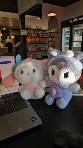 This is an extremely spacious and welcoming cafe. The drinks are gorgeous and definitely deliver in terms of presentation. There's so much seating area. There's two outlets by the front windows and a bunch at the back tables behind the games. They have several claw machines and gachapons where you can exchange money for coins. Great date spot.
