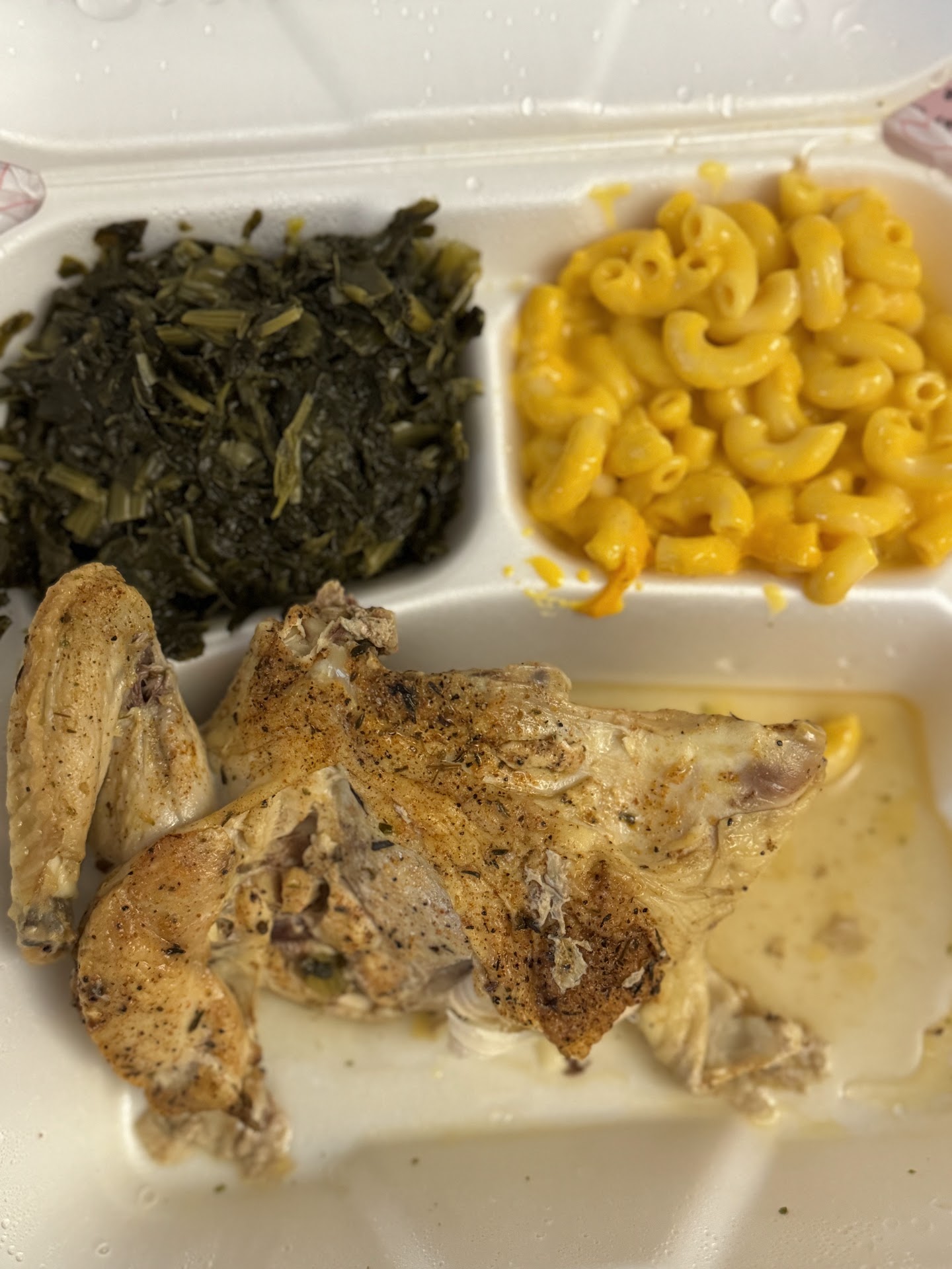 Read moreI am very disappointed. I thought this was home style cooking. I ordered baked chicken, turnip greens, and carrot soufflé. First, the turnip greens wasn’t seasoned and taste like it was poured out of a can. The baked chicken was dry like beef jerky, but the carrot soufflé was pretty good. This is nothing like soul food. This food taste like elementary/hospital food. I almost forgot about the mac n cheese. This mac n cheese tastes just like box mac n cheese. This was the worst mac n cheese I’ve ever tasted. What of waste of my time and money. This plate went straight to the...