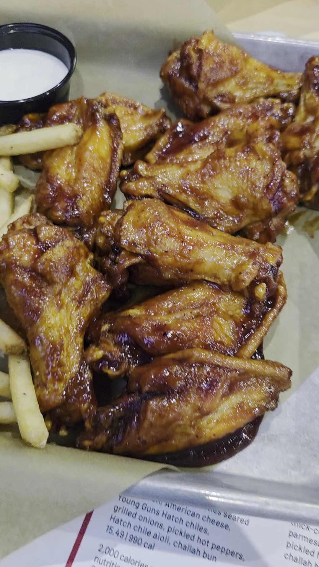 Knocking off 1 star for the wings because there was NO flavor on the dry rubbed. We got 3 different flavors of dry rub and one sauced. The dry ones were completely devoid of any seasoning, they were just naked wings. As can be seen in the attached photos, there is a pile of the chipotle bbq seasoning underneath one of the wings. We were at least able to dip the wings in ranch then dip it in the seasoning to get a taste. What appears to be the salt & vinegar rub came out in several clumps, like they shook the dregs from an empty bottle over the wings. None of it stuck to the wings. There wasn't enough to dip the wings in. I couldn't even detect the lemon pepper. We'd had a long day of dental appointments and had an hour+ drive back home so wasn't worth making a complaint. However, next time when ordering wings there will make it a point to mention "extra rub" or perhaps ask for some on the side.