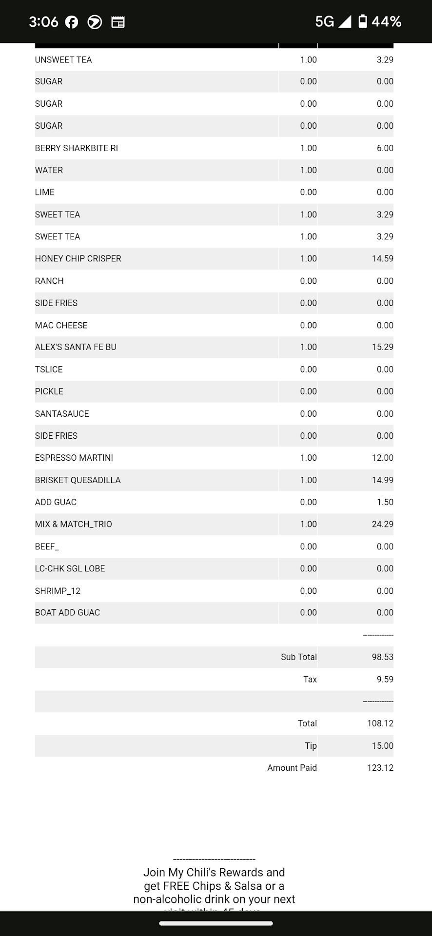 Read moreWent last week had the best service ever. Last night the expirence was terrible. We ordered an appetizer, received wrong appetizer. Purchased fajitas asked if could substitute beans for corn. The food was not its normal. The waitress cone to get our plates then advised whenever your food if cooked she would bring it out. The taste of everything was lackluster. Order 2 of the 2 for 25 with free appetizer coupon. The bill was 87 dollars. There were 4 charges for 1 appetizer, 2 added charges for extra sides. It takes the waitress about 10 minutes to return with our cheesecakes to go, so we could advise her of the incontinence of the bill. She then said ohh I can get the manager to take those off if we wanted her too. We'll yes that would be great. She had to go back 3 times and get us a hard copy of the receipt before she understood. After the 3rd time the bill had come down to 66 dollars. For the sake of time paid and left. Got into the car and she still had gotten over on us 2.99. Will be a long while before we return, and would advise others to check the ticket on the portable checkout...