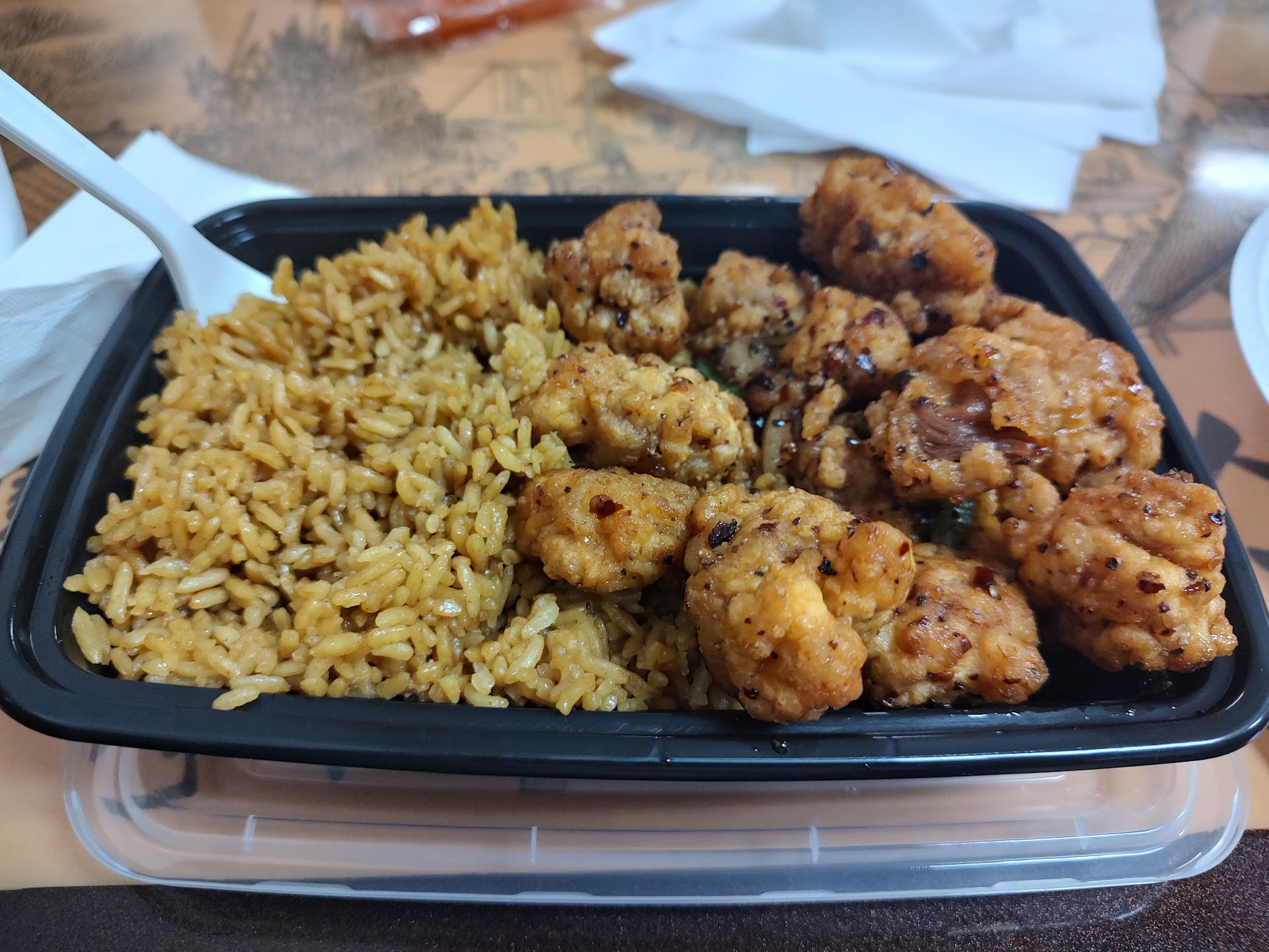 Additional review here. My wife and ordered and received delivery via GrubHub. The food was hot good and generous. I had beef and mixed vegetables beef rice and an egg roll. The food was in a nice little plastic tray that was easy to eat from without spilling, the rice was packed into a box to easily add to directly to our meal. Very happy...