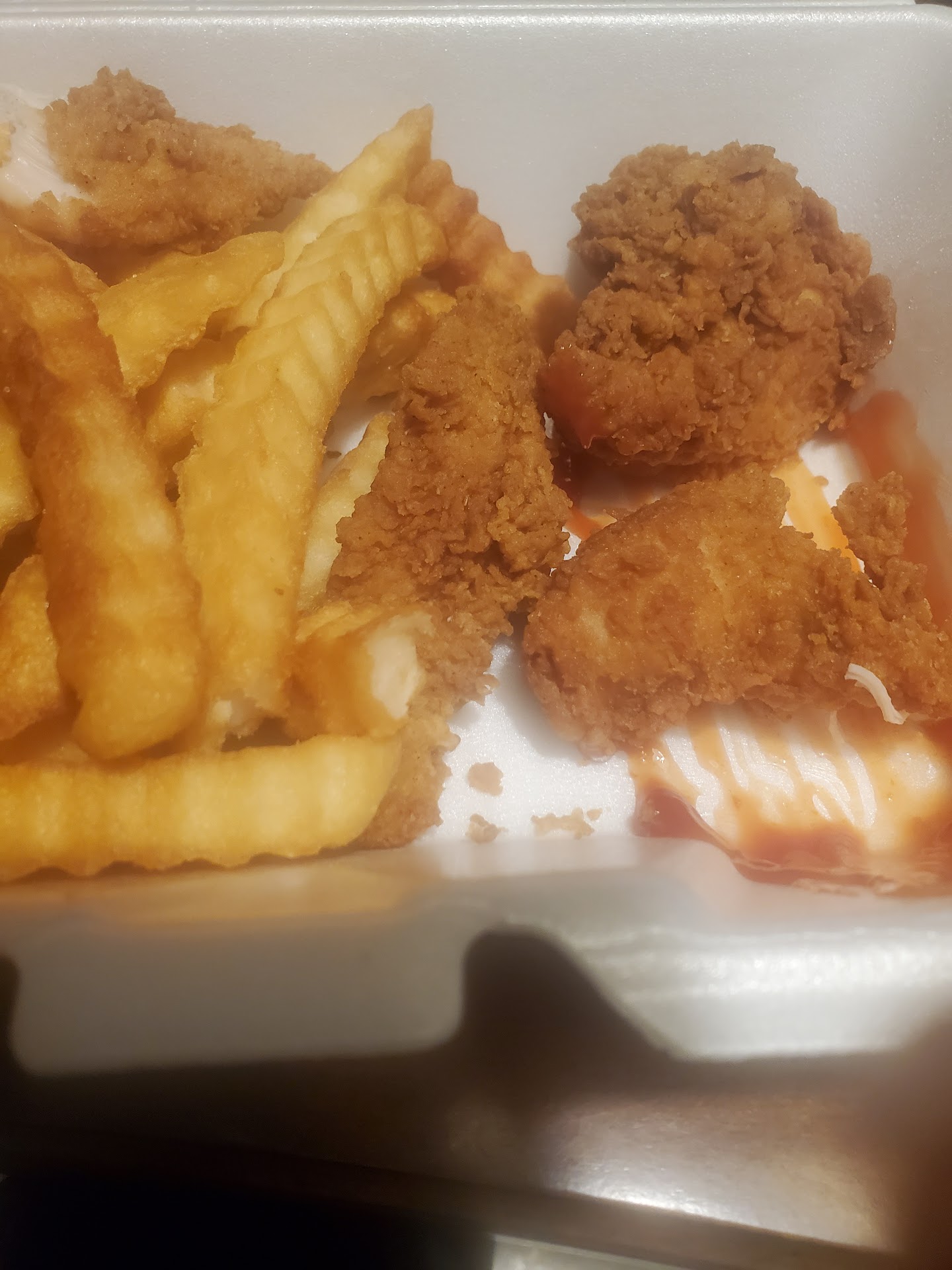 Read moreA 5 pice chicken tender plate to go10.00, ok. When I opened the container the chicken tenders were dark brown Fries dark brown. No dipping sauce. So I called to inquire is this normal. Answer, well they are filtering the grease know. I was told that the sauce was over looked and that I did not have to request it. I was told I could speak to the Manager, ok thanks only she came back and oh the manager is no here. I would call back tomorrow someone would be able to assist me. I told her thanks and I understand the problem. Ten dollars on a meal that tastes burnt…., The employees work there understand their job I can only assume. I have to ask at what point do one tell the customer? Hey it will be a while before we can get you what you want, we are changing the frying oil for a better quality to serve. That is what costumer can understand…. Not, that will 10.00 that you, and give people food that taste like it was...