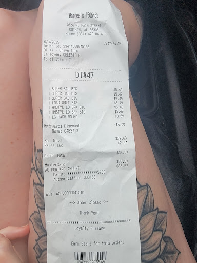 Ā Ā Ā Read moreI was completely OFFENDED by your staff drive thru. I know I am a city girl, but there was no reason for the staff to be so bluntly rude, laugh and say that she could not understand my accent. I would have never told her that I didn't not understand her accent. Every city has there own way of talking and some have a city accent and others have a southern accent and some have a foreign accent. I have never in my 53 years been so offended and felt discriminated by another culture and I come from a city that is completely diverse and surrounded by people from other cultures and ethnicities. This establishment needs to reconsider their training and hiring procedures. This was my first time at Hardee's and I can honestly say, it will be my last time visiting a Hardee's, it left much to be desired. I travel to southern Alabama quite often, but I will never step foot in this...