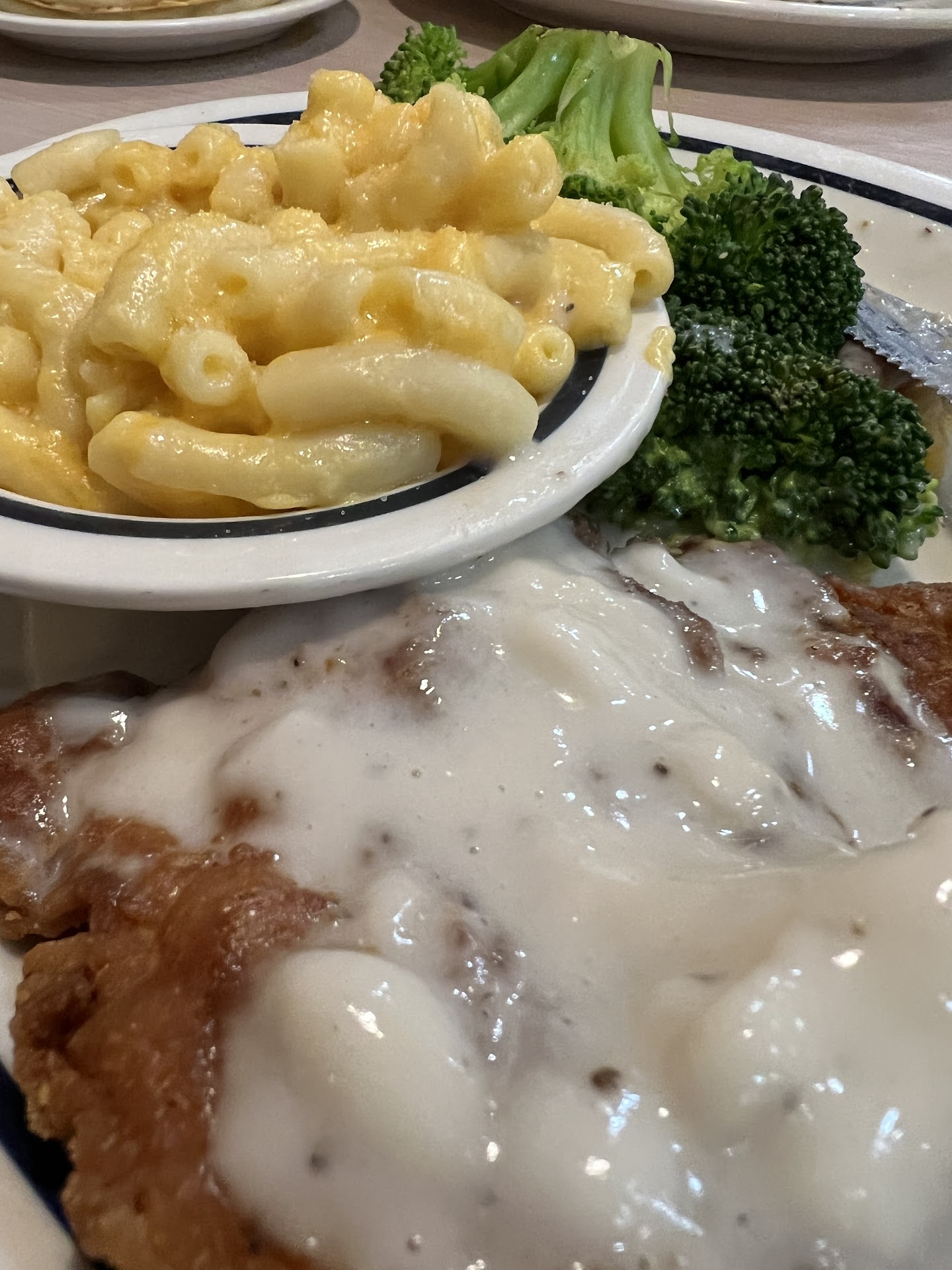 Read moreI had a wonderful breakfast with my son , but let me tell ya why I’m here , If you have been in food service you can usually tell if the server is new or in training this day he was , Actually was impressed very attentive , polite and somewhat knowledgeable about the menu . My son ordered a waffle and I had a breakfast sampler , The server grabbed the wrong sampler and served it to me I noticed right off the bat my eggs were wrong , I didn’t mind I’m not to picky so I began to eat , well what I did NOT and I mean did not appreciate was hearing them scold the sever the entire corner of the restaurant could here that’s embarrassing and I have been there before! Then some lady with grey hair and glasses comes to my table and attempted to just take my plate “ oh here it is “ ya he served the wrong one , I said ok but I have already ate off the plate at this point she had the plate in her hand as if she was going to take it right back to the warming window and then reserve it . That’s a no no. And after this kind of this incident I could bet it’s happened several times and the person eating the food had no idea . 🤮 gross what if I had coughed or stuck my finger in it prior to any of it ? And for the lady to just come to my table and pick up my plate with out first explanation of what in the hell you are doing . I tipped the server and assured him i was fine . People are human ya know and if you people are keeping him on eggshells then he is more than likely going to mess up more . What she did was more disgusting and disrespectful to the customer in my opinion. You was legit about to take my plate and reserve it . ( I had only eaten 1 of my sausages) if it was a wander. Will not return based on my experience with her . That’s a shame . How long have you been in food service ? And then people wander how they...