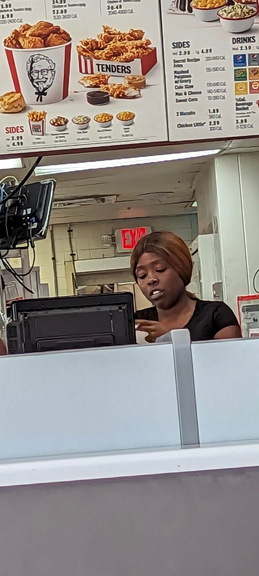 Read moreWe ordered 2, 4 piece tender meals from the drive thru yesterday... we parked to eat in the parking lot. I opened the boxes. I wasn't sure what I was looking at. They were shriveled up pieces of what they called a tenders, and crinkled up fries...that looked like the had been left in the microwave overnight. I closed up the boxes. Placed them in the kfc bag and went in . I felt I was pretty polite... I asked for some fresh tenders.. I opened the box and said look at these poor things... I couldn't believe it... but the girls behind the counter proceeded to inform me that the tenders just look like that!... I asked for my money back. I don't want them if this is normal... the manager came out of the office...proclaimed that kfc changed the recipe and I replied ok... I will just take my money back. Another girl comes up and said the tenders will be ready in 4 minutes. All of them look at me.... I said I'll wait 4 minutes, No problem. I asked if I could get fresh fries also... they nodded... at the end, I received tenders and fries that were hot, and looked like normal kfc yummy Tenders and crispy hot fries!I was just blown away by the sheer lack of any care of what the food looks like they are serving. As I waited, I asked the young lady who was running the register if she would eat them if she ordered them. She says... idk i eat them all the time and they look like that... Raise...