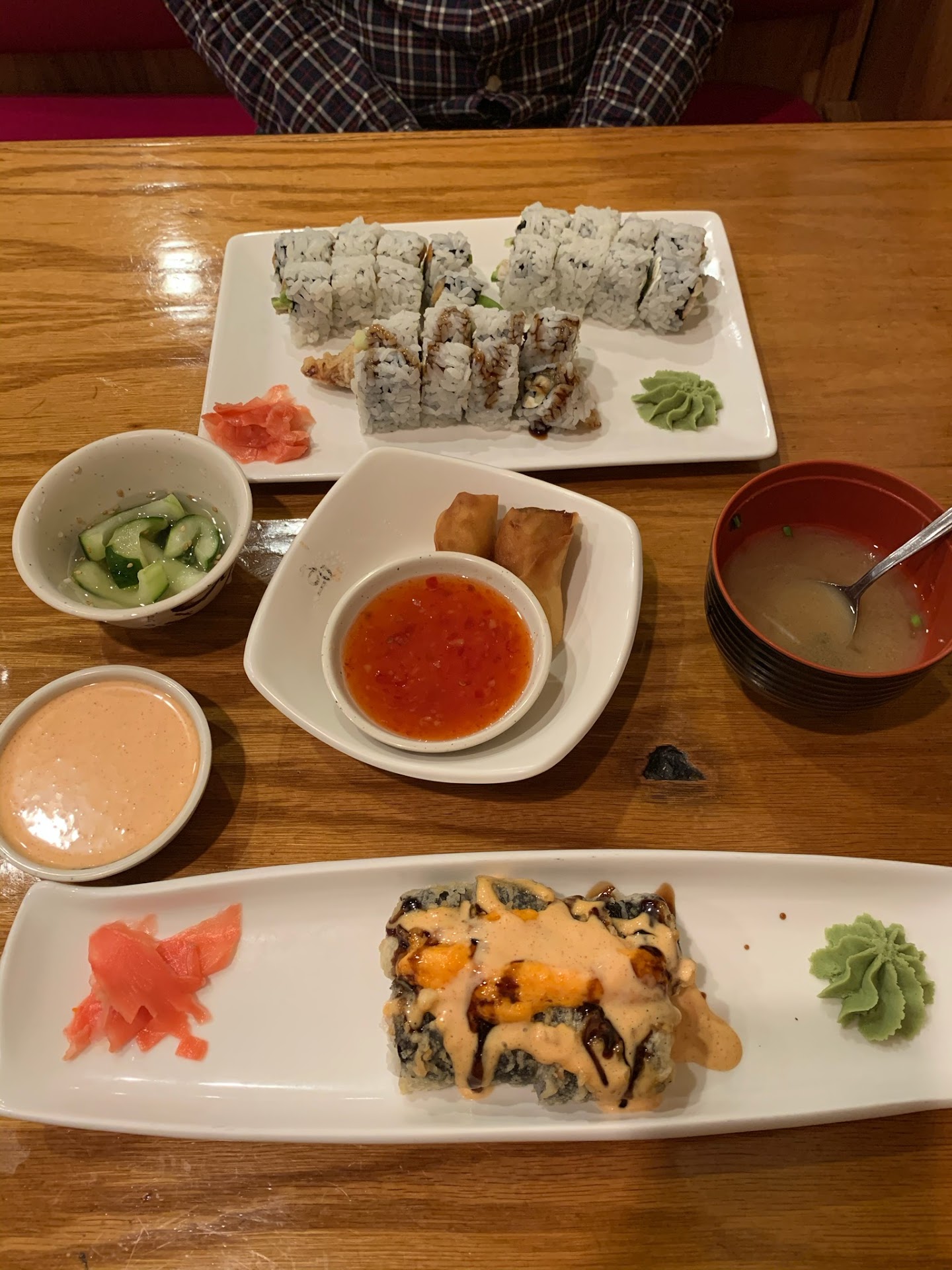 Let's start with the service. We didn't know who our waitress was, or really who the wait staff was. It wasnt busy. The tables were half full. We had to ask some random waitress if we could order after sitting there for 20-ish minutes. Had to stop and ask a bus boy for water at the one hour mark. We got our sushi after being there for an hour and a half.