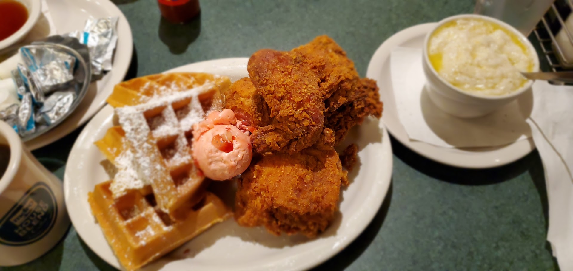 The food blew away my expectations. The menu is a nice mix of Diner classics with a southern twist. My wife had the fried chicken and I had the shrimp and grits and a cup of shrimp corn chowder. Everything was fresh, full of flavor, and absolutely delicious. The chicken was crispy and juicy; the redskin mashed potatoes were clearly homemade and incredible. The shrimp corn chowder was creamy and flavorful. The shrimp and grits were in a delightful cream sauce, flavorful and delicious.