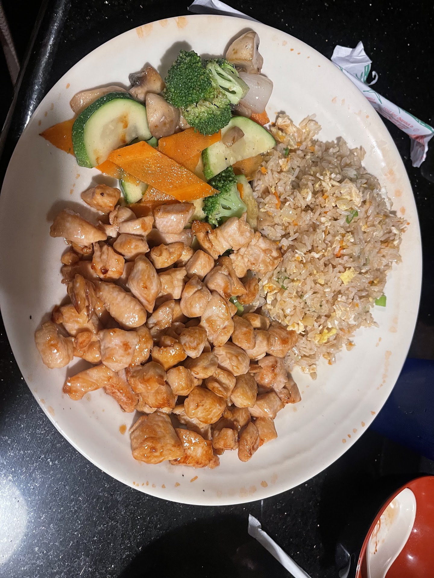 After sitting down and ordering our food, we smelled propane gas which (under assumption) was powering the stovetops in the kitchen. We ordered the steak and chicken plate for the main course and a couple of sushi rolls on the side. After receiving the food, we heard the host clipping his nails before getting back up to handle more food and bus tables. My boyfriend finished his main course, I could barely stomach half of mine because the chicken was very rubbery and bland. We didn't even touch our sushi and got the rest to go.