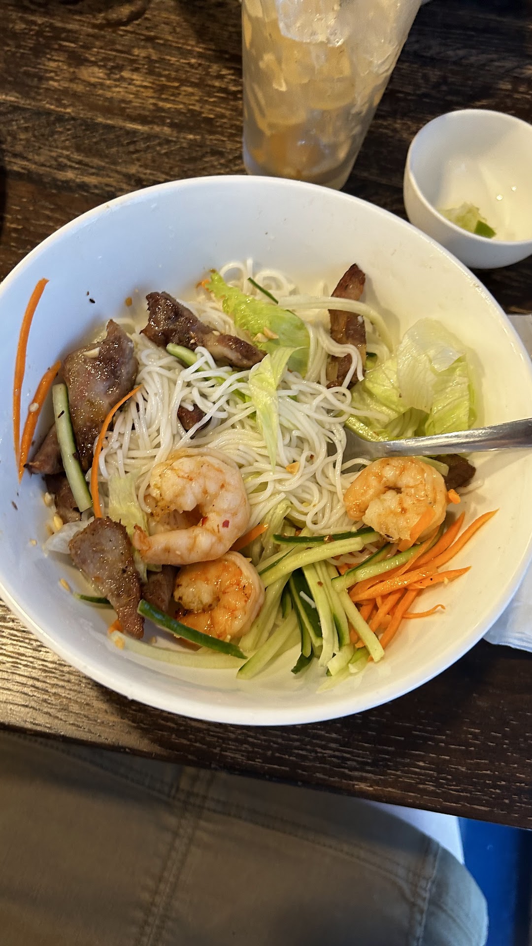 Read moreFirst off I was mad about the fact that I wanted Bún Bò Huế but when I order it with the waitress she told me to pick 3 meat selections listed under Phở section. I told her these options are for Phở and it should be added to the bún bò Huế because it woud not be bún bò Huế anymore...anyway...we ended up changing our orders. My mom ordered the combination Phở and I had the combination vermicelli noodles. The broth for phở definitely lacks in flavor, plus it's cost a lot for barely any meat and veggies. The vermicelli noodles is decents, however it was definitely a new experience when I was asked to pick my own sauce for it (this is the first vietnamese restaurant gave me options for sauce lol). Overall the food is ok, nothing special. I do expect more out of the phở since that's the name it...