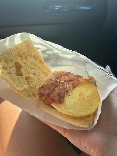 Read moreStaff was very friendly and I love the little note on my cup (I needed it this morning 🥰). My grande latte was delicious, however, I also got the bacon Gouda and egg sandwich and I was honestly disappointed. I know they may be premade, however, when a sandwich looks like this I do not think it should be sold to a customer especially at the price...