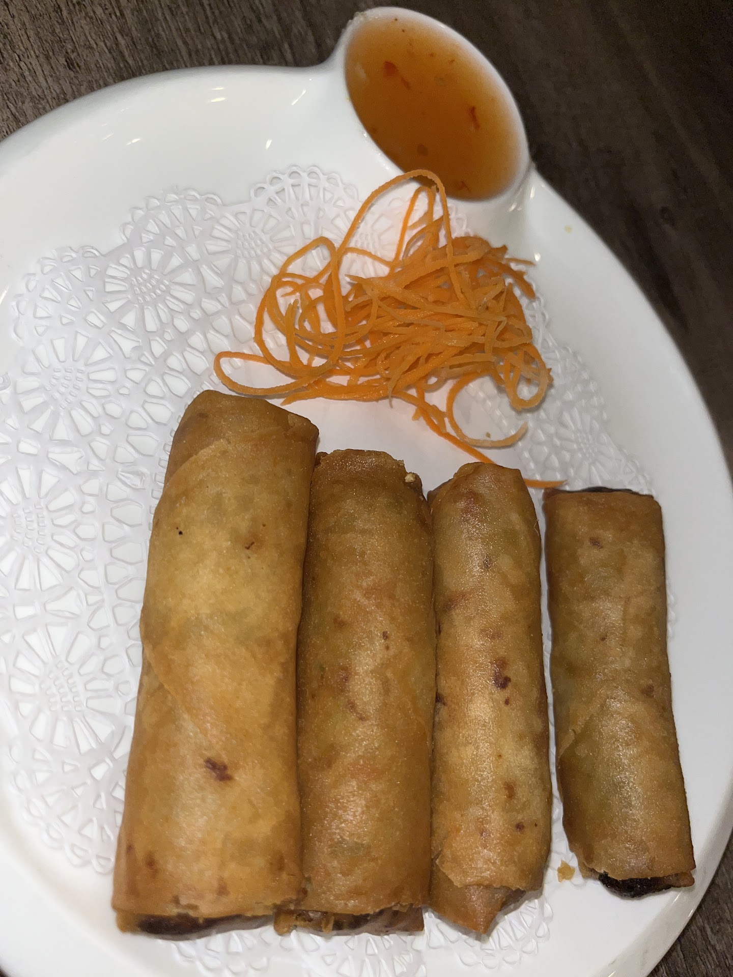 We spent almost 50 dollars for those 2 items and a Thai tea. While the menu had a disclaimer about prices changing due to COVID, having the sampler go up from 15 to over 23 dollars, and the Pad Woon Sen go up from 13 dollars to over 18 dollars was quite eye-popping, especially with zero warning. At some point you need to reprint your house menus as it is flat out misleading with that kind of difference.