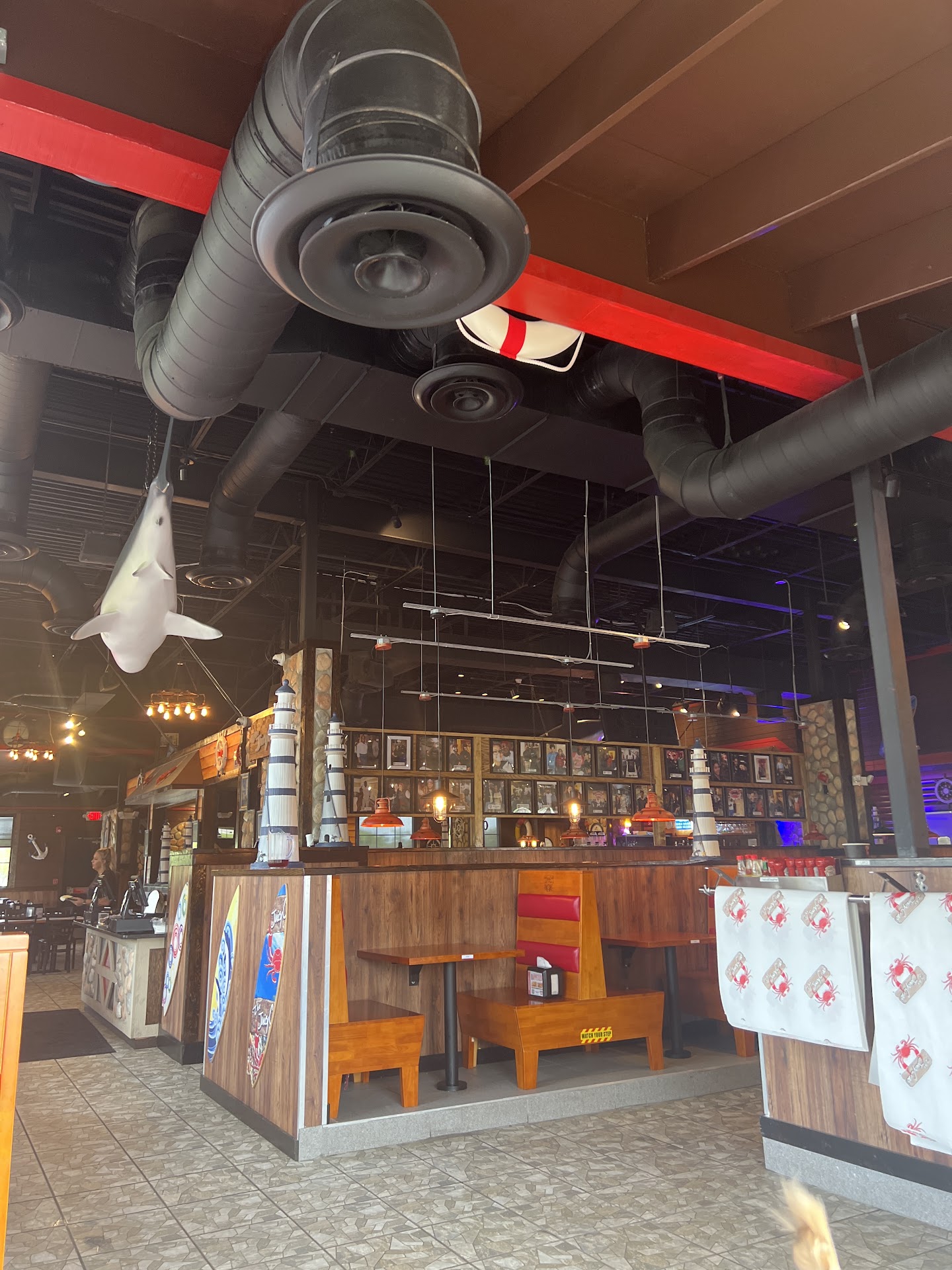 Got seated right away, at a booth right in the middle of everything, but we sit there FOREVER. Another waitress eventually comes to tell us our waitress is coming, but it still takes forever. Finally a waitress comes and takes our drink and app order, along with the order for the toddler. Again FOREVER passes and finally brings drinks, but she "forgot to bring a bucket" and darts away before we can order or ask questions about something confusing on the menu. FOREVER passes again and she brings back the appetizer but didn't bring whatever bucket we were supposed to have but still didn't need it yet anyway. She then didn't come back until the food was ready, which was forever again, and she brings the toddlers food at the same time despite us having ordered it way earlier with the drinks, so he's difficult to handle - every other restaurant recognizes the priority of getting food out for a little kid but this place didn't care. Then we wait forever for her to come back so we could pay. She didn't come to get refills for us during any of this. TERRIBLE TERRIBLE SERVICE, literally spent hours here just waiting around. Also the high chairs sucked, hurt my kid's leg and wasn't tall enough for the table, I don't know how they screw up a basic high chair.
