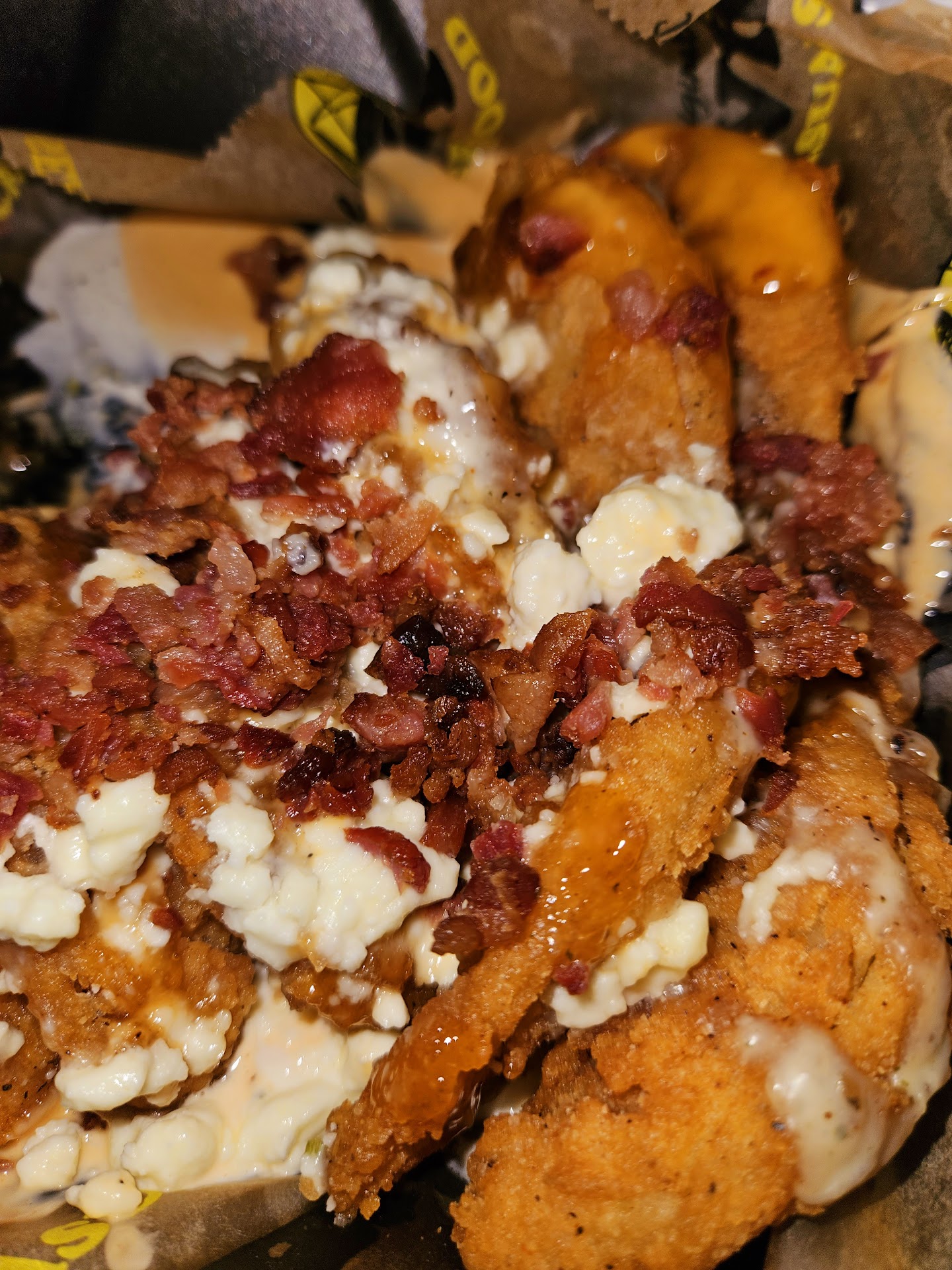 Our appetizer was received and I'll be very honest. It was the only reason the review was two stars. I found myself devouring them over the cleverly disguised leather that was shaped into a shrimp and breaded to perfection.