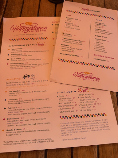 Had our first visit to Happystance this morning and there was some good some bad. The atmosphere was good, we enjoyed the outdoor seating area and it wasn't overcrowded or overly loud. The food was pretty good, decent portions and everything was cooked well. The biscuits and gravy tasted great, but there was nowhere enough gravy to match the 4 biscuits. It tasted great, just not enough. The standard breakfast was... Pretty standard. The bacon was delicious but could've been crispier and the potatoes were overly salted. Where our visit fell short was the service. The food came out fast, so the kitchen was fine. Our waitress (unsure of name) was quite rude. This was not limited to us, she was overly rude to every table close to us. In addition we saw her forget requests of other tables. We continued to hear sighs and see eye rolls throughout our visit for everyone. It could've been a bad day, but service held this back from a 5 star review. Go for the...
