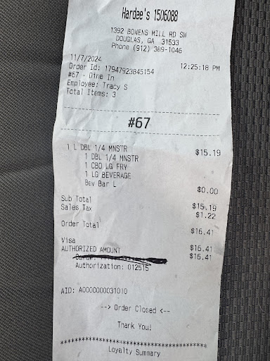 Ā Ā Ā Read more5/19/24 time 2:00 pm, I had someone to pick up me a burger, when I set down to eat it I noticed that the burger meat was dry and hard,un ate able, I called hardees, the phone ring about 20 times at least before anyone picked up, I asked to speak with a manager, she came on and asked how can I help you, she didn't address herself by name i asked her and boy did she get jazzy at the mouth, I asked her name she answered with a question, what's your name, very unprofessional, the problem here is this is not the first or second time. But third time that I've gotten poor service from Hardee's, she said i could bring it back, if i had the time i would have went at it myself, and to bring it back wasn't an option, look hardees is never busy they always standing around doing nothing with poor attitudes, theres one manager thats far differently than all the rest, that mrs donna, shes always pleasant, but the others that i encountered, attitude suck nothing personal towards me i felt, for Hardee's to never be busy they just can't get you order right, one thing about a business, you can work it or work yourself out of one....