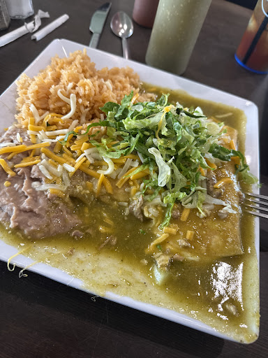 I ordered the cheese enchilada plate smothered with a green sauce and it came with beans and rice. I will give that a five out of five stars, was very good not too spicy, and they do bring some red and green sauce to put on top if you like it spicier.