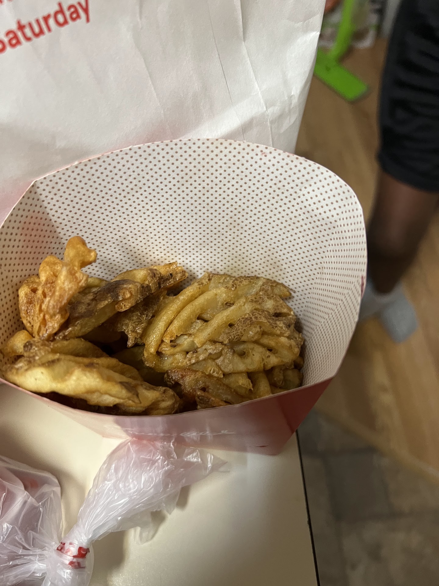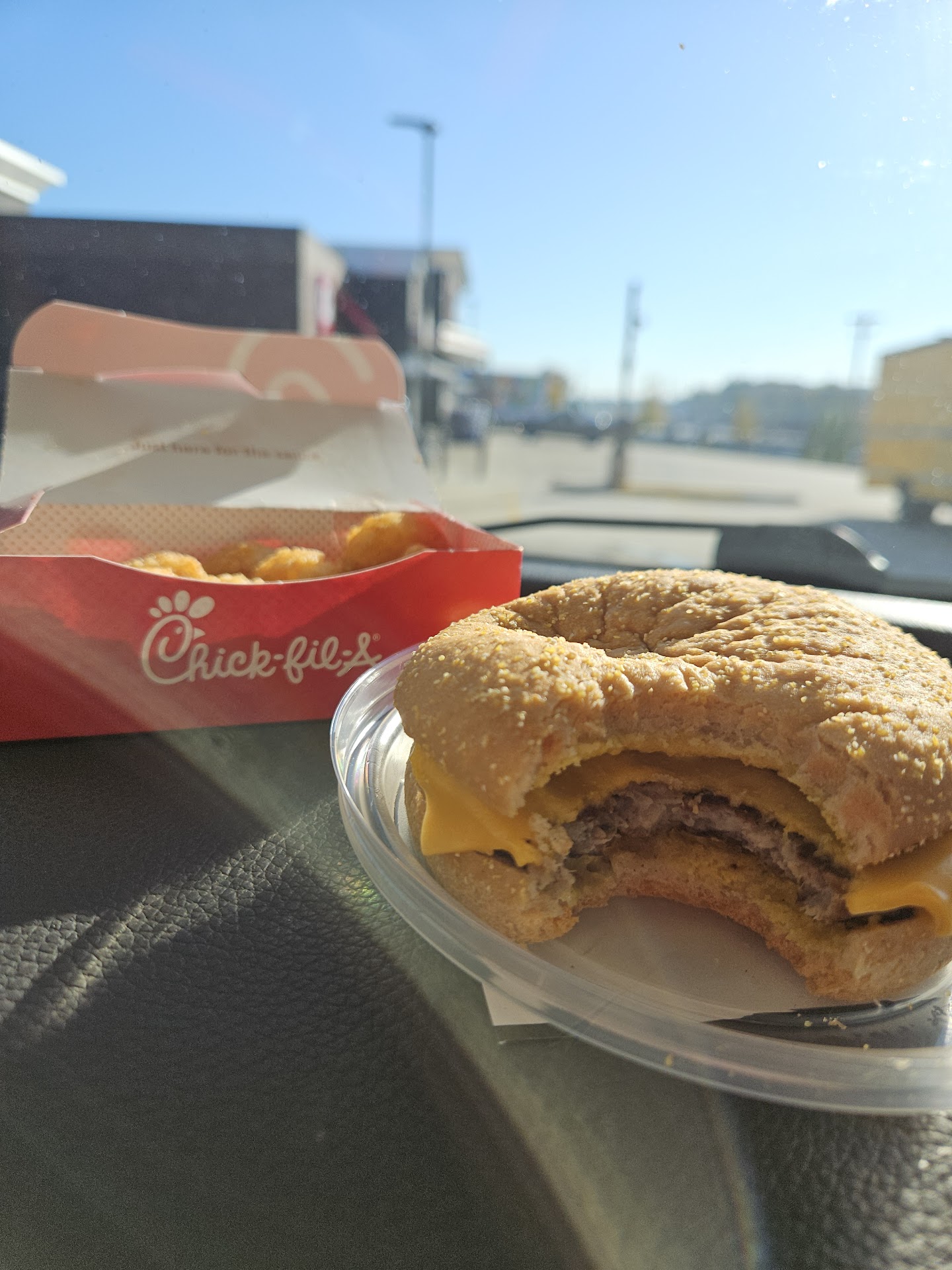 Read moreAwful awful place to go ..if I could give them ZERO STARS I would...my order taker was dripping in sweat running up and down the drive thru chasing cars rushing me to pull up and I had several orders but every time I tried to make my orders I was interrupted TO PULL UP by the order taker when I asked if I could just make my order without the interruption she stated that she was being ordered to pull up by managers no matter what to get the cars in..THEN the tablet crashed due to extreme temperatures because itâs 95 degrees outside AFTER I FINALLY WAS ABLE TO FINISH MY ORDER BECAUSE I WAS CONSTANTLY BEING TOLD TO PULL UPđI asked the kind employee if they were well compensated for all this extreme nonsense she said well itâs minimum wage đ€đźthey donât care about their underpayed MINIMUM wage employees being outside in extreme weather either ..Seems like all they care about is rushing you to pull in and up so they can get as many cars as possible in that tiny cramped up parking lot then you get stuck in a traffic jam trying to leave ... They donât have a dining room either and only offer 3 or 4 tiny tables to eat at OUTSIDE which are made of metal that gets hot during the summer đ„”I sat down there on my second visit just to avoid the traffic jam and rushed service I experienced the first time and got up with grill lines on my legs not to mention I had to breathe in nothing but exhaust from the drive thruđ€ąđ· ...AND they have 2 toilets with very long wait times if they are occupied and there were at least 3 people WAITING !!! đŹJust DONT GO HERE THEY SUCK!!! Poor design poor management NOT LIKE ANY CHICK...