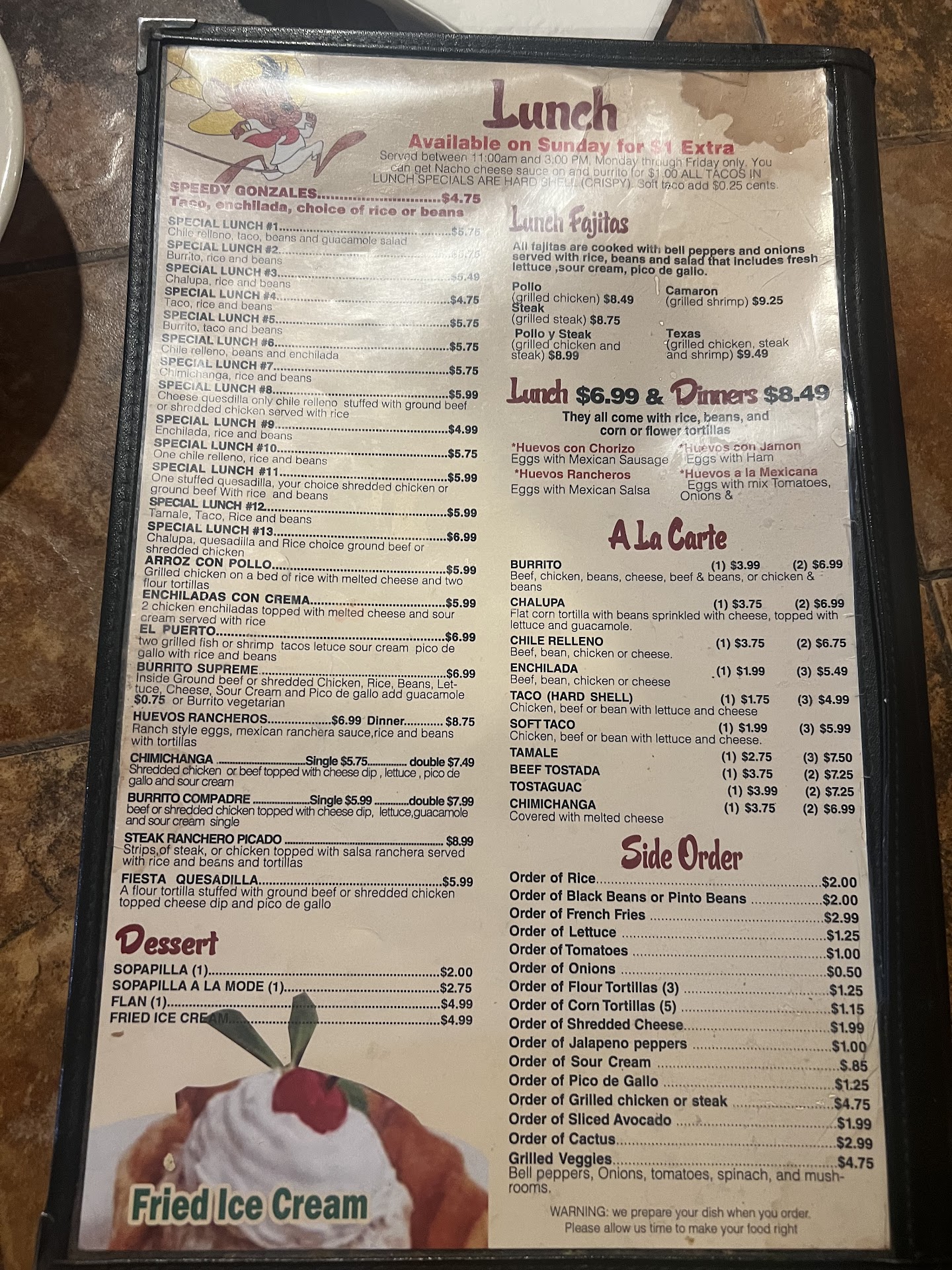 Read moreI just thought I’ll share my experience with you guys from this restaurant. I left my son game feeling good and we decided to go out and have Mexican otw home to celebrate his first middle school game (he’s in the band) we stop at this restaurant and it’s looks close; there’s not a single soul inside my son was skeptical but I was like good because I don’t like a lot of people anyway. We order and besides the fact we’re absolutely the only patrons the food takes a pretty good while to get ready. We finally get food and it’s all pretty bland. My son ordered tacos but was told about 15 mins after we ordered they were out of beef so he substituted for shredded chicken. He barely ate them as he said they had absolutely no taste just as the Texas fajitas I ordered. Nothing was flavorful not even the peppers it was just grilled with splashes of water it seemed. I asked for the check and this is when it seemed everything went left. The waiter didn’t want to bring it to my table then when I received it it was a piece of notebook paper with scribble and numbers and a small register receipt but NONE of the prices matched ANY of the food or drinks we ordered. I asked the waiter about it and he explained prices had increased since the menus had been made then he said he apologized and adjusted the price of 1 of my items because he stated it was actually over priced over the changed prices. I gave him my card and just said to myself it was ok I would just not patronize this restaurant again. While waiting for my receipt to sign someone came from the back stating the prices were subject to change and they were labeling all menus and because I didn’t get one of those labeled it was not his fault, the prices were only a few dollars change so it shouldn’t matter and I should pay with no issue! My night seriously went from a joyous congregation moment of my son 1st middle school game to a what in world is going on moment when the employee came from the back arguing to justify our overpriced tacos and fajitas. $50 that’ll never be spent here again…. Beware if you chose to eat here the food’s not very good and the customer service...