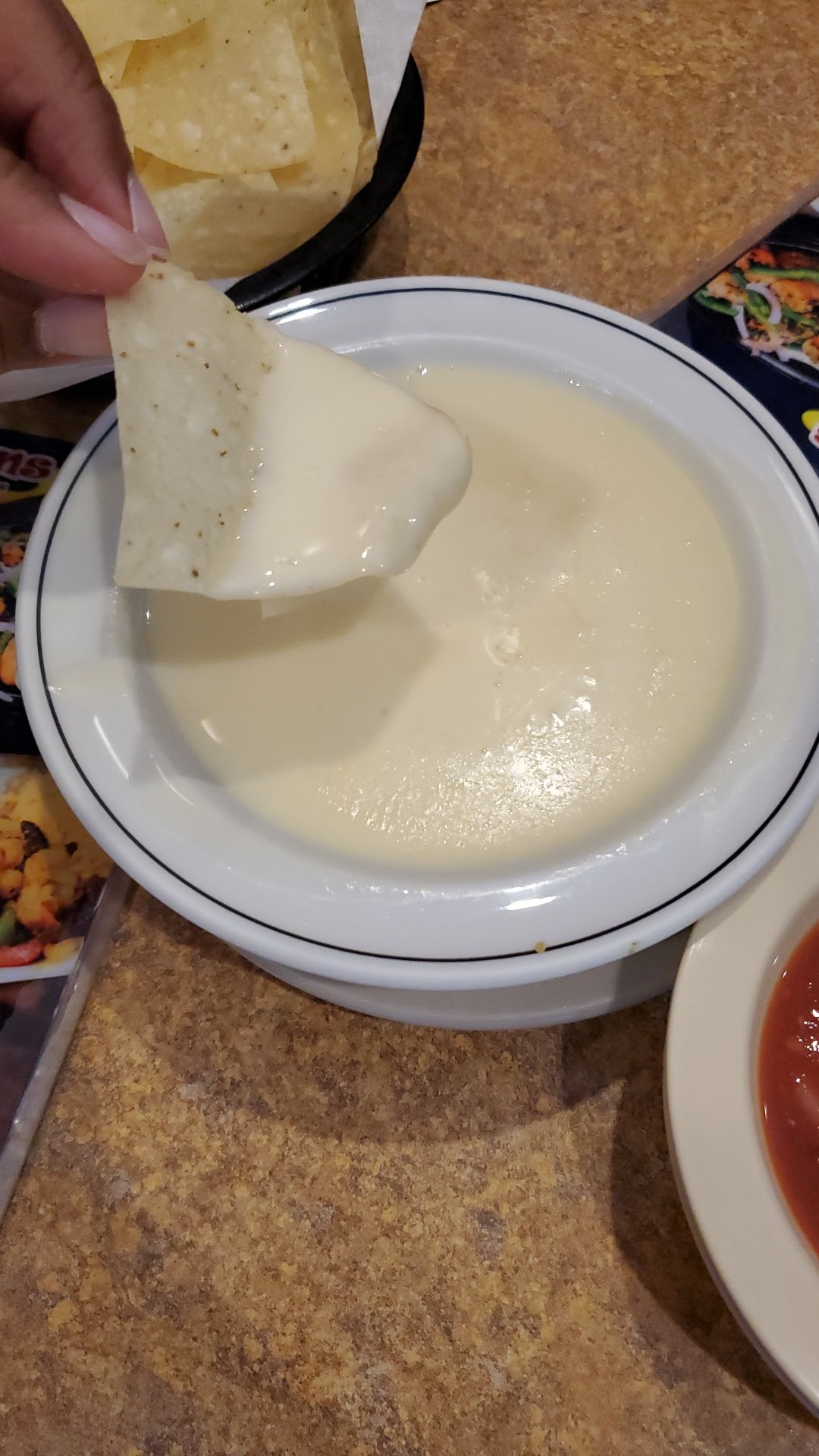Read moreThis is my second less than stellar experience, and while I have had many decent experiences, tonight was enough to turn me off for good. Our waitress got us, threw some menus on a table well ahead of us, and kept walking. We sat, were giving chips and salsa, and ignored for about 10 minutes. We then placed our drink order when the waitress came and stood silently beside our table. I ordered a margarita and water while the rest of the table ordered sodas. Drinks came, I got a margarita with table salt on the rim, and we got one straw for 3 people, I didnt get my water. She took our order, I asked again for a water. No more than 60 seconds passed before food was sat on our table by another waitress, obviously not for us. The other waitress repeatedly said not to blame her, the original waitress put down the wrong table number. We got our very cold and hardly melted cheese dip, and of course sent it back, to get it back again microwaved and all over the place. Our meal comes, isnt right but at this point we just want to eat and leave. She places a salad plate directly in front of my 5 year old daughter, never once said it was hot, so my child of course burns herself. The waitress then joked bringing the next plate about how she burned herself and it was so funny. Another person in my party ordered a steak medium rare, which apparently meant charred to a crisp. I ask again for water. Flagged her down for more chips. Still no water. Fifteen minutes pass and we had to stand at the register to get our bill. The price was outrageous, but I can handle that for good food and service. I never got my water, straws, chips, check, and the service was horrid. I pay with cash, to which she asks for exact change so she wont have to open the register, which I do not have. She starts digging and asking for more change and I give up. Still tipped 10% plus whatever change she owed me. And I will...