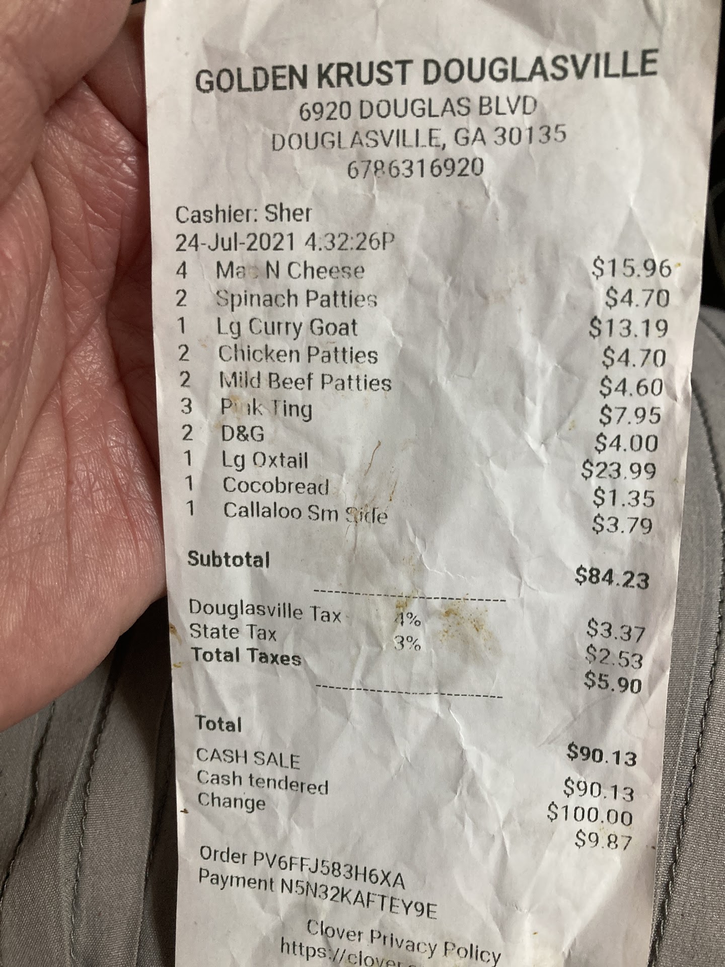Read moreAfter a few years wanting to go to Golden Krust I am truly disappointed I was treated very poorly even though I spent $90 all the while I was saying please and thank you the young lady in the front her name tag had Sher on it was very rude to me after asking and waiting for a new pan of macaroni and cheese to come out she very carelessly and sloppily served me three containers with cheese dripping all down the side I’m talking about strings of cheese like 8 to 10 inches long rolling her eyes at me going back in the kitchen whispering to each and everyone as they looked out at me directly through the window she wanted to make sure I saw yeah! My finance and I saw you don’t worry about it each and every person you whispered to turn back and looked at me straight out the window to where I was sitting eating a meal with my fiancé and my three grandchildren! As I mention to my fiancé he saw you too but I can take my $90 elsewhere I don’t need the rudeness the disrespectfulness and everything else ! If I wasn’t so tired from working 90 hours a week with brain and spinal injured patients I would’ve asked to speak to the manager I was just trying to have a quiet Saturday with my fiancé and my grandchildren and enjoy a Sunday early dinner. I’ll take my $90 elsewhere next time I’m truly disappointed ! In the about section of this business says...