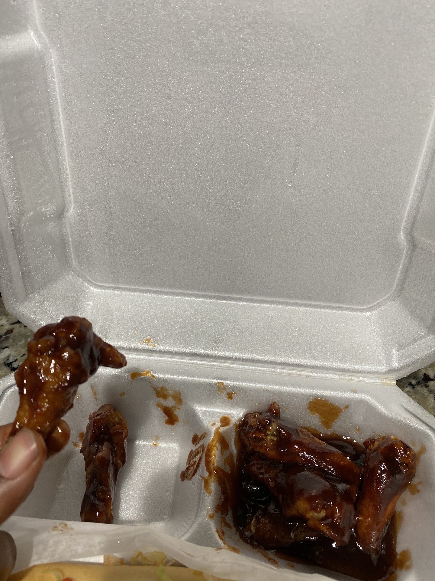 Read moreThis has got to be the smallest wings I have ever seen in my life! The picture makes it look bigger. Not to mention I asked for wet, not saturated! I had more sauce than I had wings!!!! And they gave me two mini square for celery as if they cut the usually half in half! Vegetable fried fried barely had vegetables and I can tell my brother was cut extremely widdle in it. My steak Philly had no flavor at all and the bread tasted soggy. I paid for 3 combos for a total of 39.43 and for that price I am a little irritated that my wings look like squirrel legs! Won’t be buying from here again. I would recommend J BAuffalo WINGS instead of J Buffalo HOUSE. I feel like it’s a play on names because J Buffalo WINGS never disappoint me in this way and the worse part is when I told the lady they looked extremely small when she was showing me the plates, she refused to accommodate or fix my order. She just kept saying “they all look like that so” and shrugged her shoulders. Won’t eat here again....