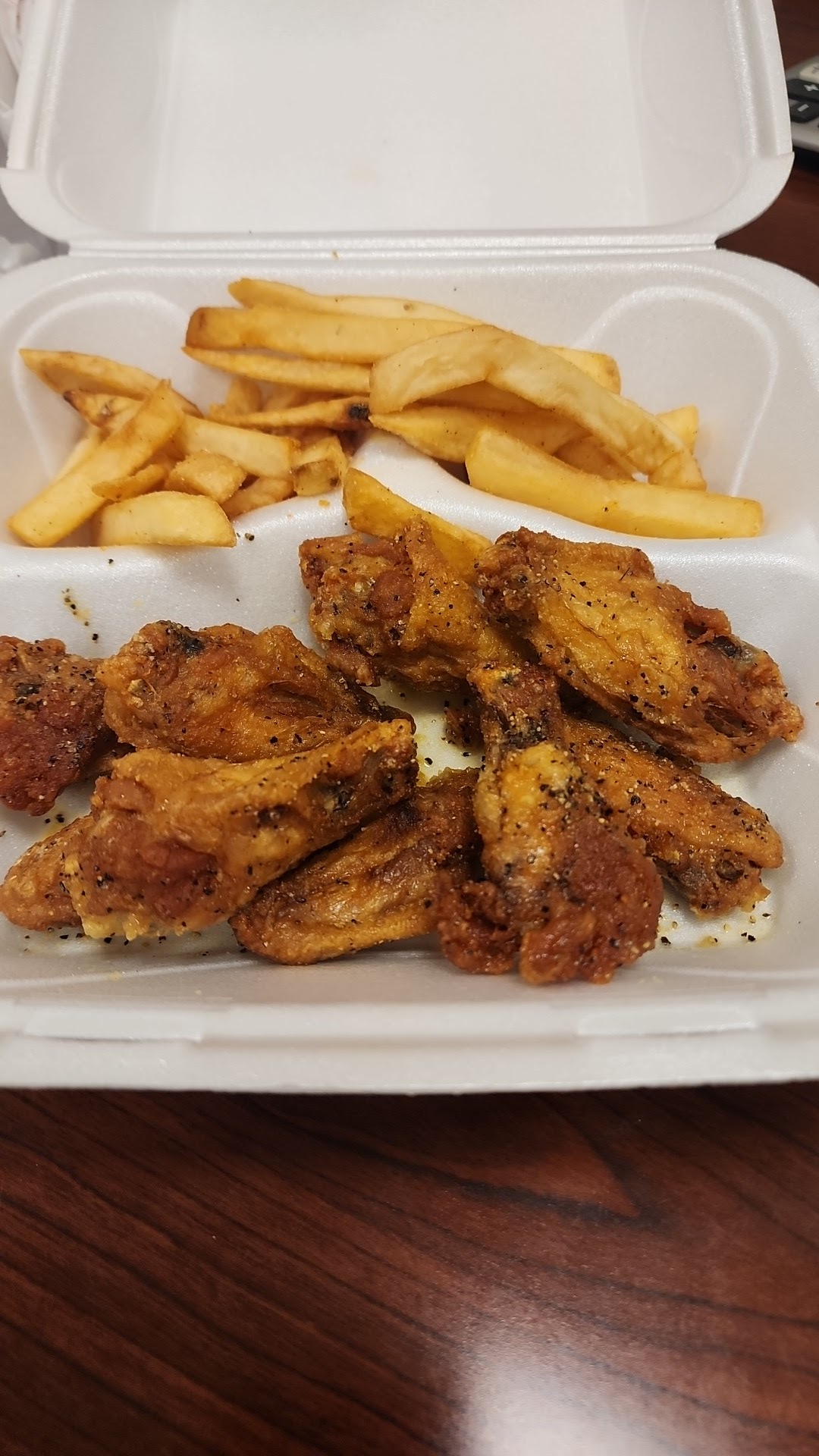 Read moreMake sure you check your order before you leave!!! I ordered two 10 piece wings and fries and an order of just wings. I was charged for exactly what I ordered but when I got home…fries were only on one of the plates!!! It was clearly written in the plate, but no fries. I tried calling but no one answered. I did leave a message. I went back today and was told “We have a phone number but no phone”. You would have had to come back the SAME day…there’s nothing I can do (mind you it was after 7 when I got home and they close at 8). Also…they charge you EXTRA if you request 5 flats and 5 drums, or all flats. They probably charge extra if you ask for all drums which I never do, yet I end up with 8 drums and two flats! While the wings are good, the service (or lack thereof) and the extra charges to the already high prices ($1 for half of a wing) will keep me from returning. CHECK your food...
