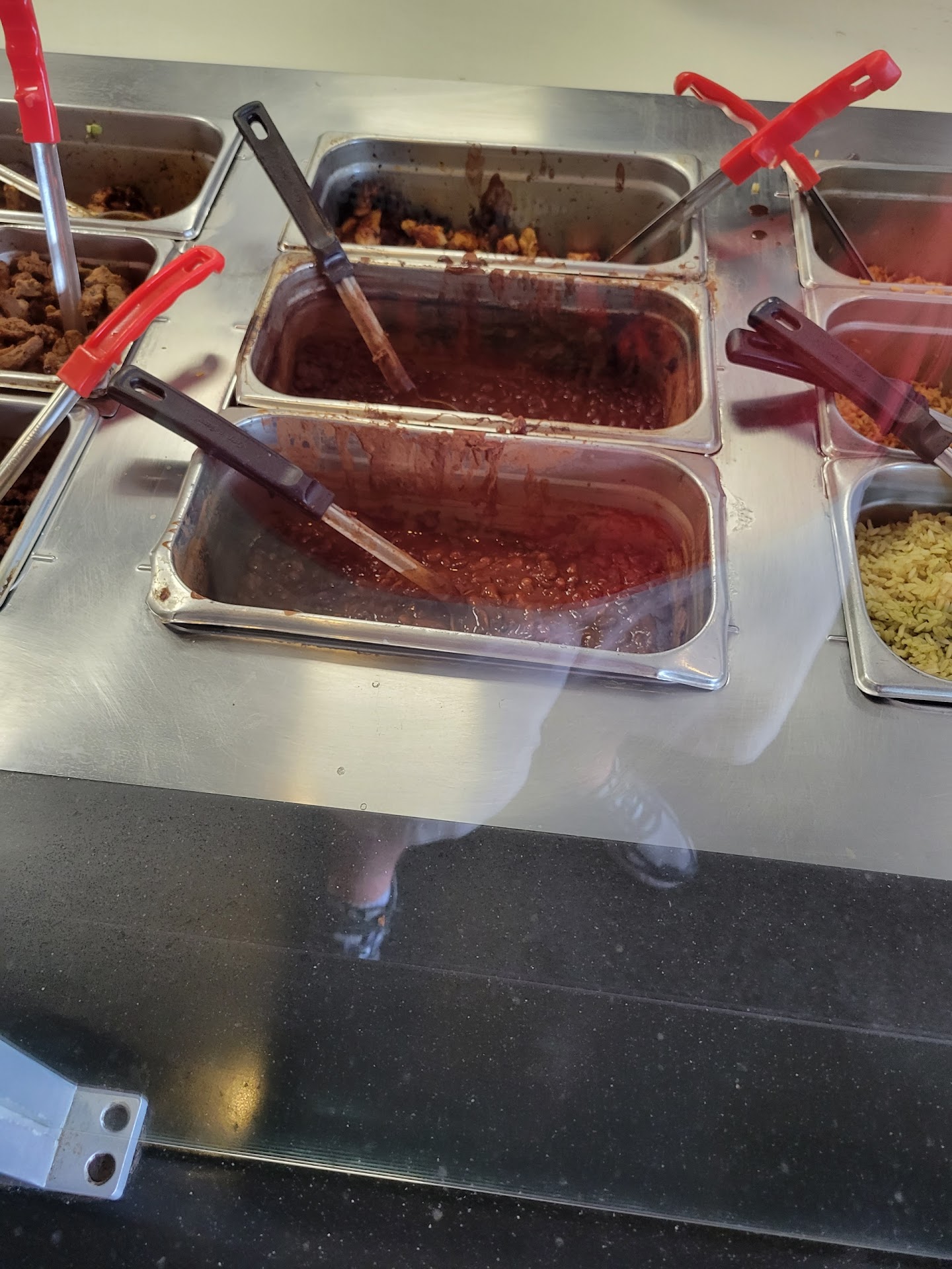 Read moreThe food here is just as good as any other Moe's... hot, fresh, tasty and large portions that more than satisfy your hunger. The staff was polite and we received our meal without issue. I don't make a habit of posting negative reviews, I prefer to promote the positive, but this one needs to be addressed. Here's what I didn't like: Considering we were the only two souls in there when we entered... the drink station, including counter space by the napkins and cutlery, was a soaking wet, sticky mess. You couldn't find a clean spot to sit a cup while you got a lid, if you wanted to. The ice machine was completely empty... not even a few cubes rattling around inside. The floor was trashed, the tables that were open were a mess, since many were labeled with stickers as closed to encourage social distancing. Empty drink cups left behind on tables, chips on seats, spills e.t.c. nothing wiped down. We didn't walk in at the peak of dinner time... it was just before dinner starts... between 4-5. My husband looked around and since nobody was in there, we purposely sat at a "closed" table since they were the only clean ones... and there was literally nobody else in the dining area. I can see why! We were very hungry and didn't want to eat this messy food in the car, or we'd have left. While eating, we observed staff goofing around behind the counter and leisurely chatting. It made me wonder where the manager was. A quick walk around the facility and some employee direction would have greatly improved the overall customer...